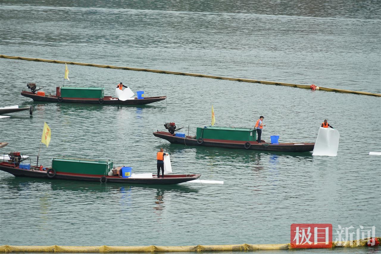 接到险情报告后,宜昌巴东海事处工作人员抵达现场察看,并立刻调配力量先期处置,同时将突发事件情况报告巴东县人民政府和宜昌海事局,通报州生态环境局巴东县分局。