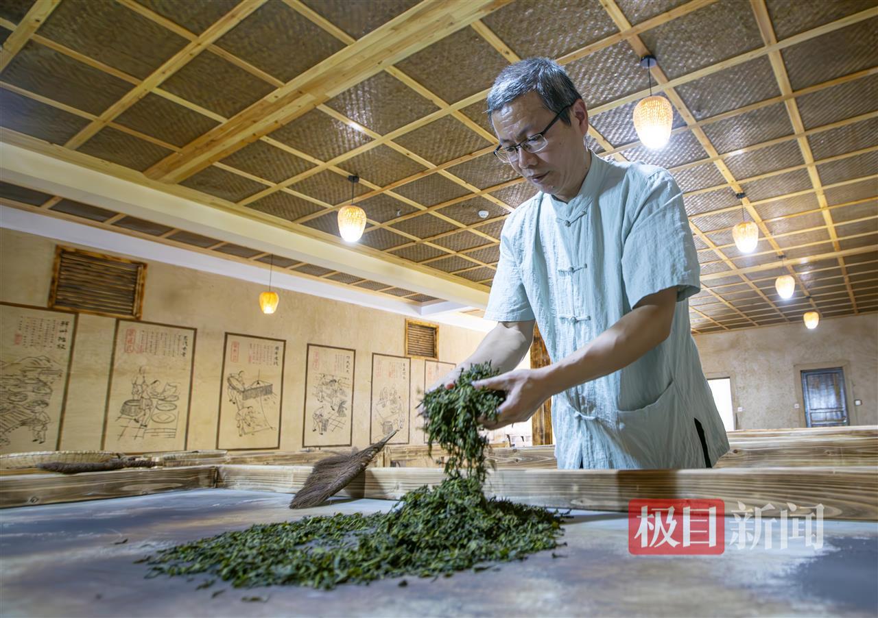 蒸青后的茶叶,要扇凉使其迅速降温,阻止茶叶氧化,使茶叶保持最鲜活的状态,再经扇凉,炒头毛火、揉捻、炒二毛火、整形上光等工艺,最终被搓成松针形态的茶叶。这是史书记载的传统手工技艺,张文旗虽然恢复了传统技法,但产量低,市场供不应求的现状让张文旗陷入苦恼。
