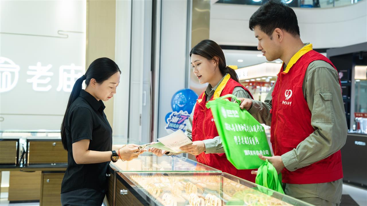 活动现场,国网黄冈供电公司在热闹街区设立咨询台,通过精心制作的展板、发放资料以及面对面答疑解惑的方式,向市民宣传电网环保和智能用电知识。工作人员热情地为过往群众免费发放《国家电网有限公司环境保护报告2023至2024》《电网环境保护你问我答》《图说电网施工环保水保要点(口袋书)》等宣传资料,同时耐心讲解智能电网的优势、节约用电的窍门以及安全用电的注意事项。