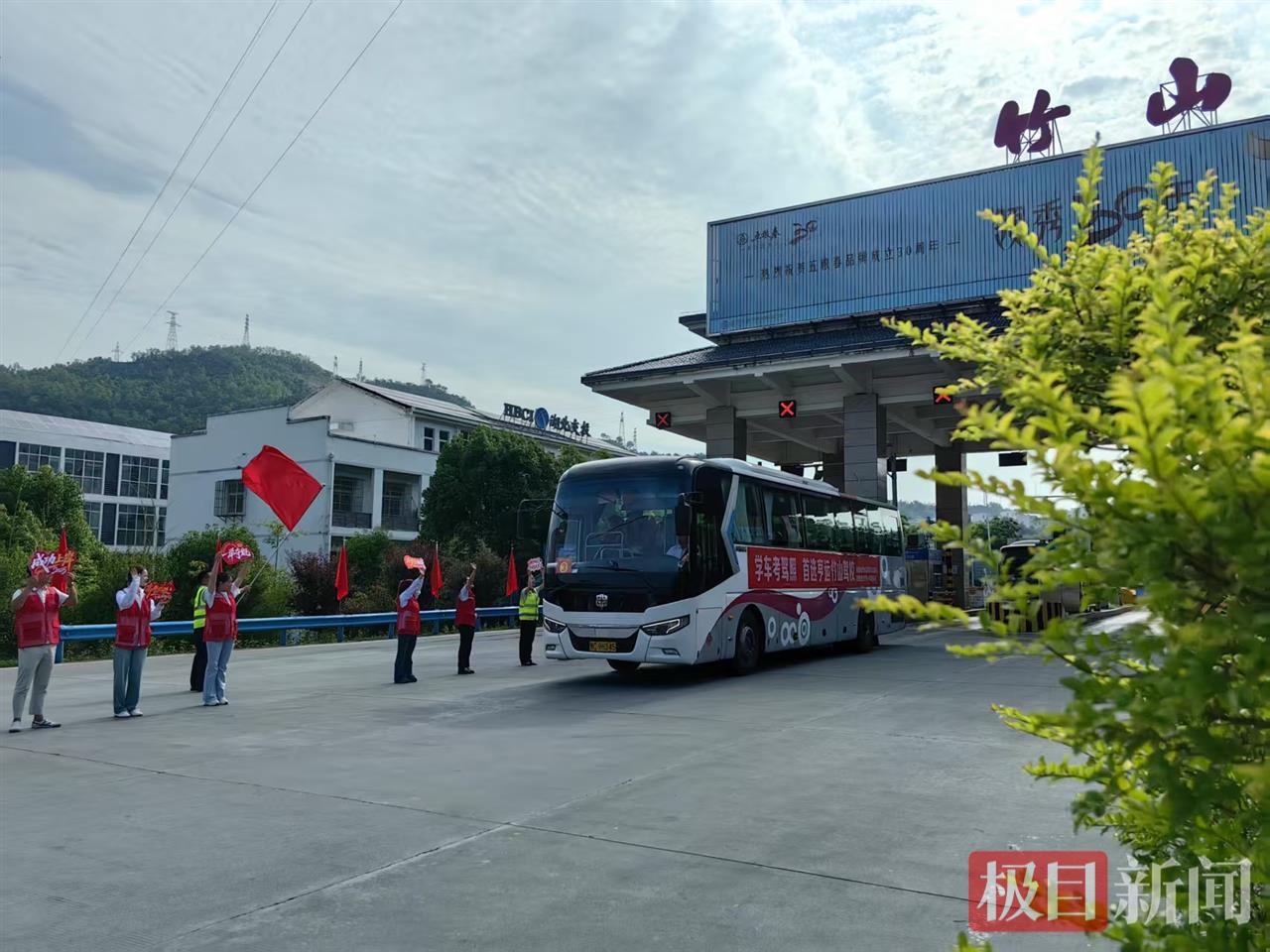 6月6日8时许,湖北交投鄂西北运营公司第五党总支“红色护航线”在宝丰和竹山收费站开展“爱心护航高考”行动,不到2分钟,来自竹山二中的21辆送考大巴便有序通过收费车道。