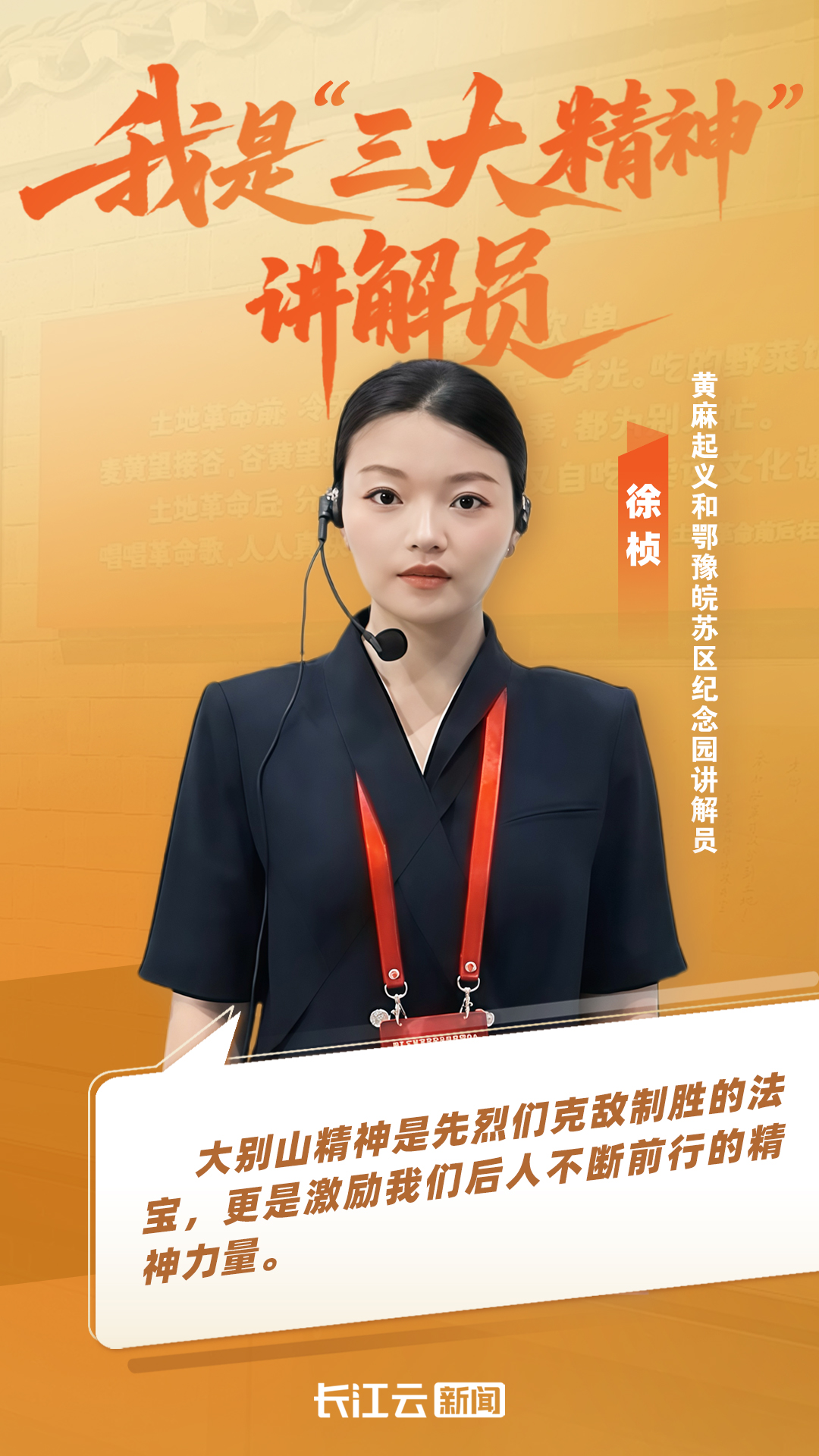 即日起,长江云新闻开设《我是三大精神讲解员》专栏,鼓励讲解员结合历史故事、亲身体验,将“三大精神”转化为可感可知的生动表达。本期特约黄麻起义和鄂豫皖苏区纪念园讲解员徐桢。