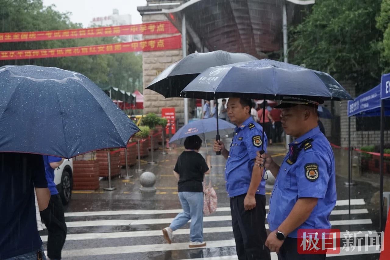 公安、城管、卫健、市场监督、供电等多部门联动,全面开展高考护航行动。面对大雨天气,各部门更是加大保障力度。