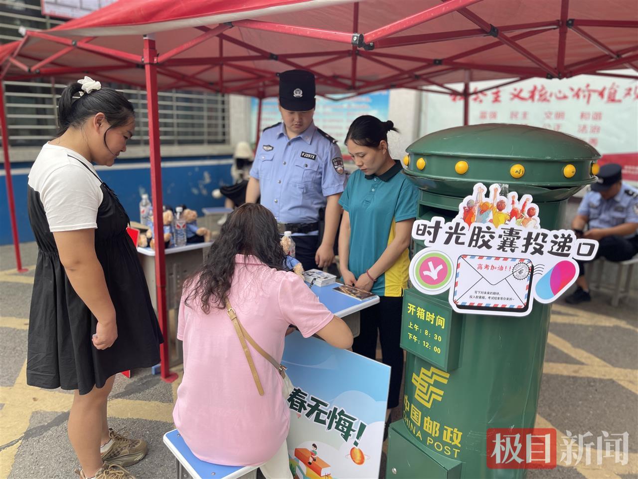 考场之外,一抹别样温情悄然流动——“警察叔叔的时光胶囊信箱”成为现场独特的风景线。考生与家长纷纷在派出所准备的明信片上,写下对未来的期盼与心语。这些承载着青春希望的卡片投入特制信箱,将在高考结束后随机抽取,成为一份跨越时光的青春赠礼。