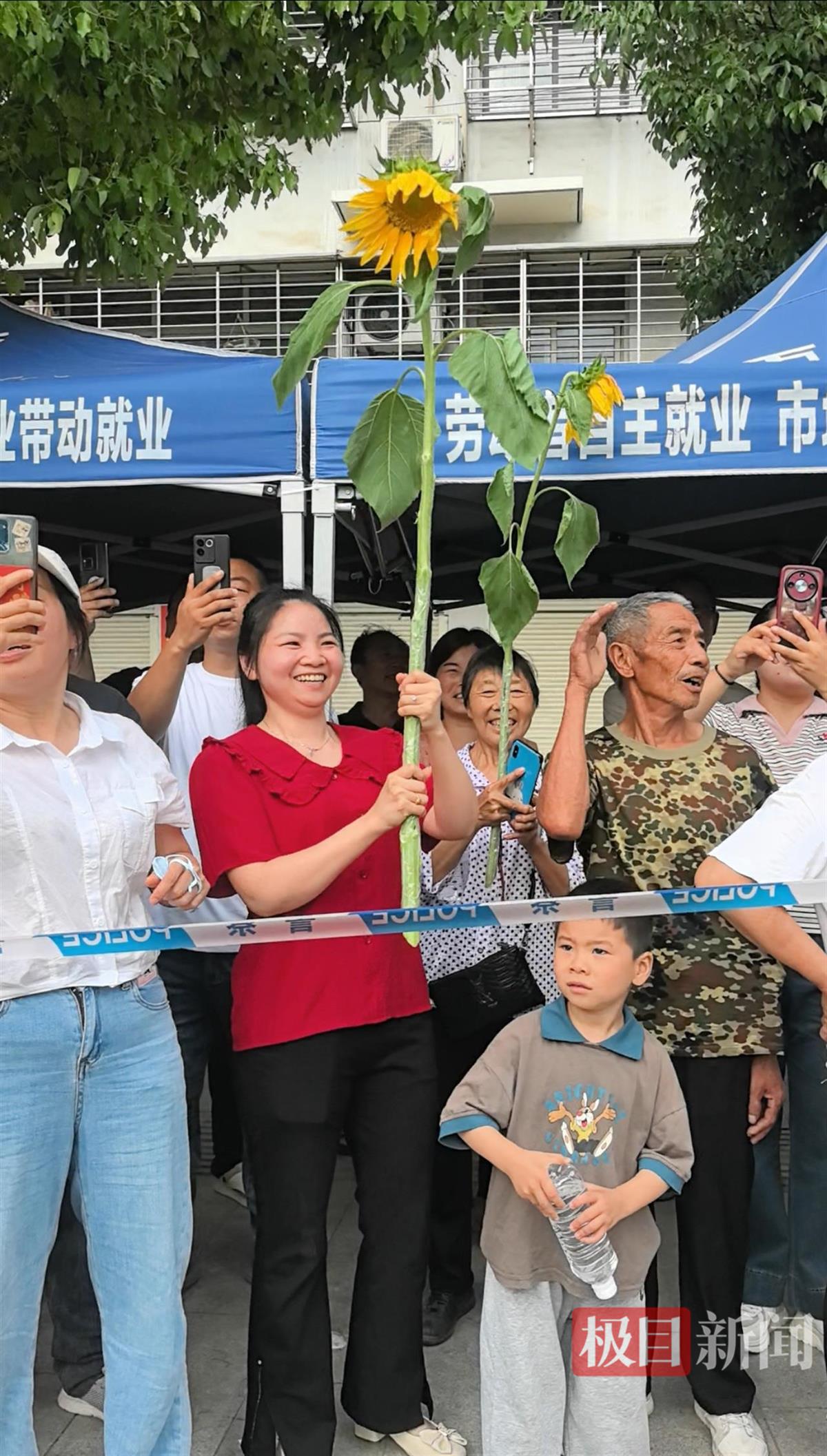 彭女士举着母亲专门种的向日葵为孩子加油(通讯员 供图)
