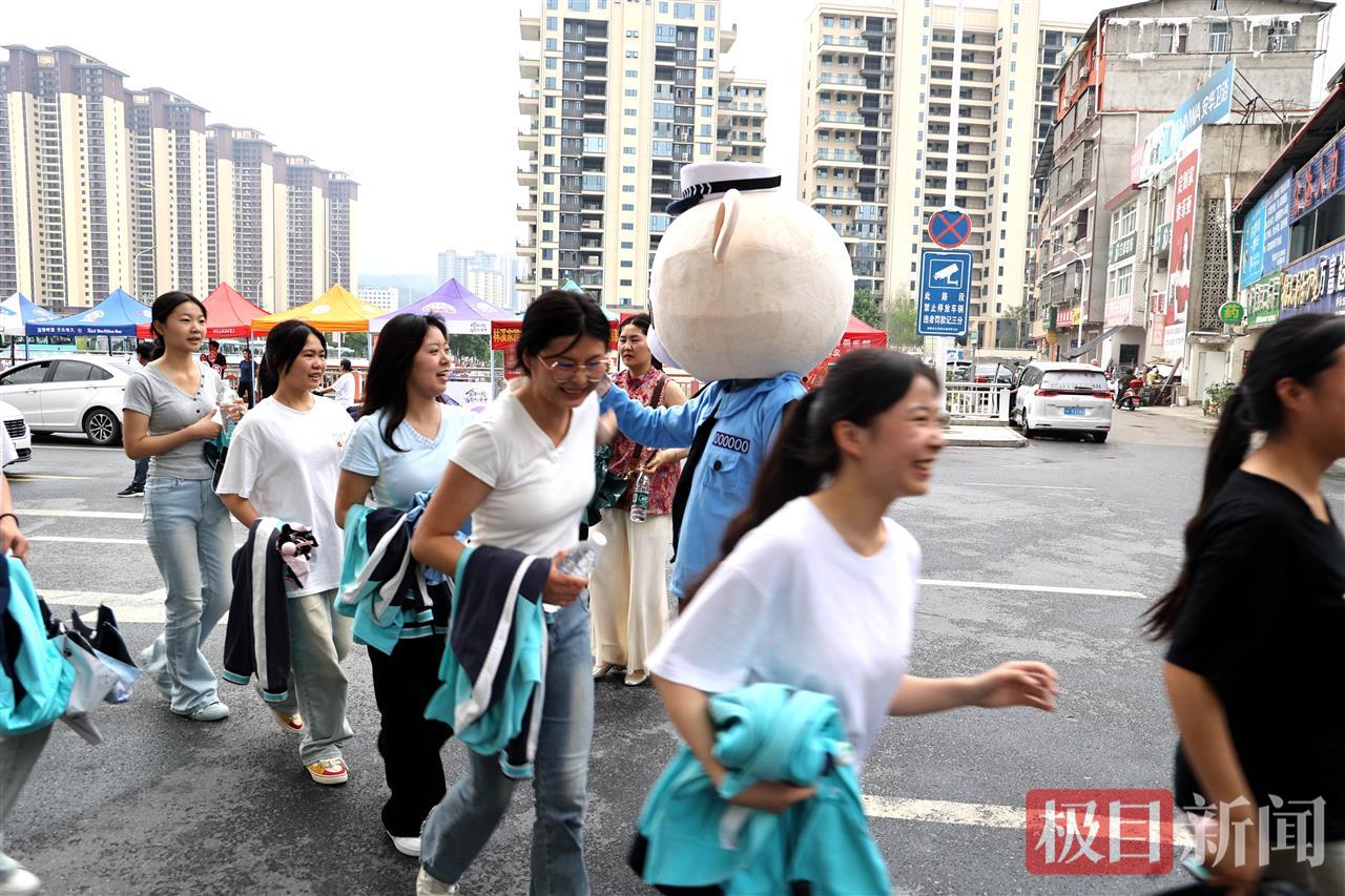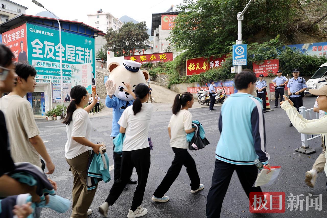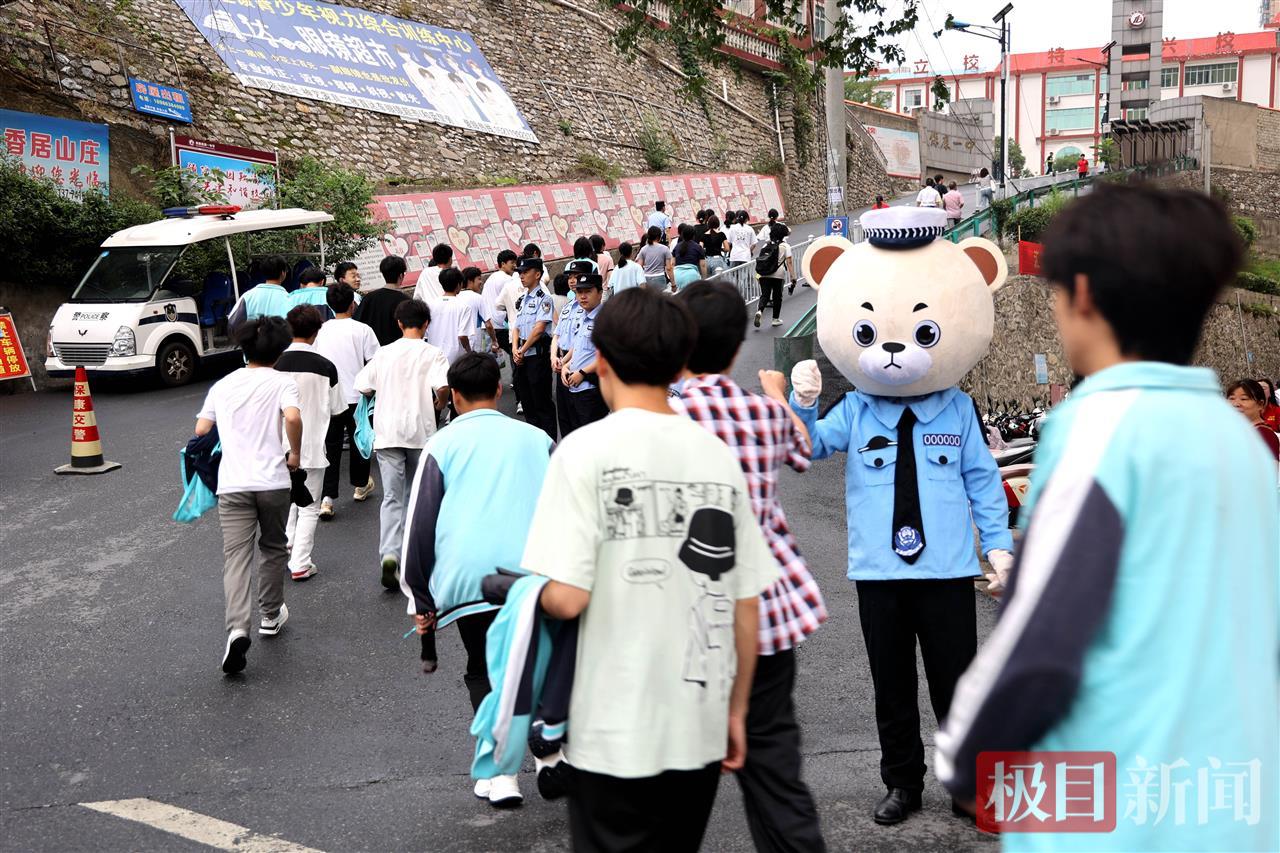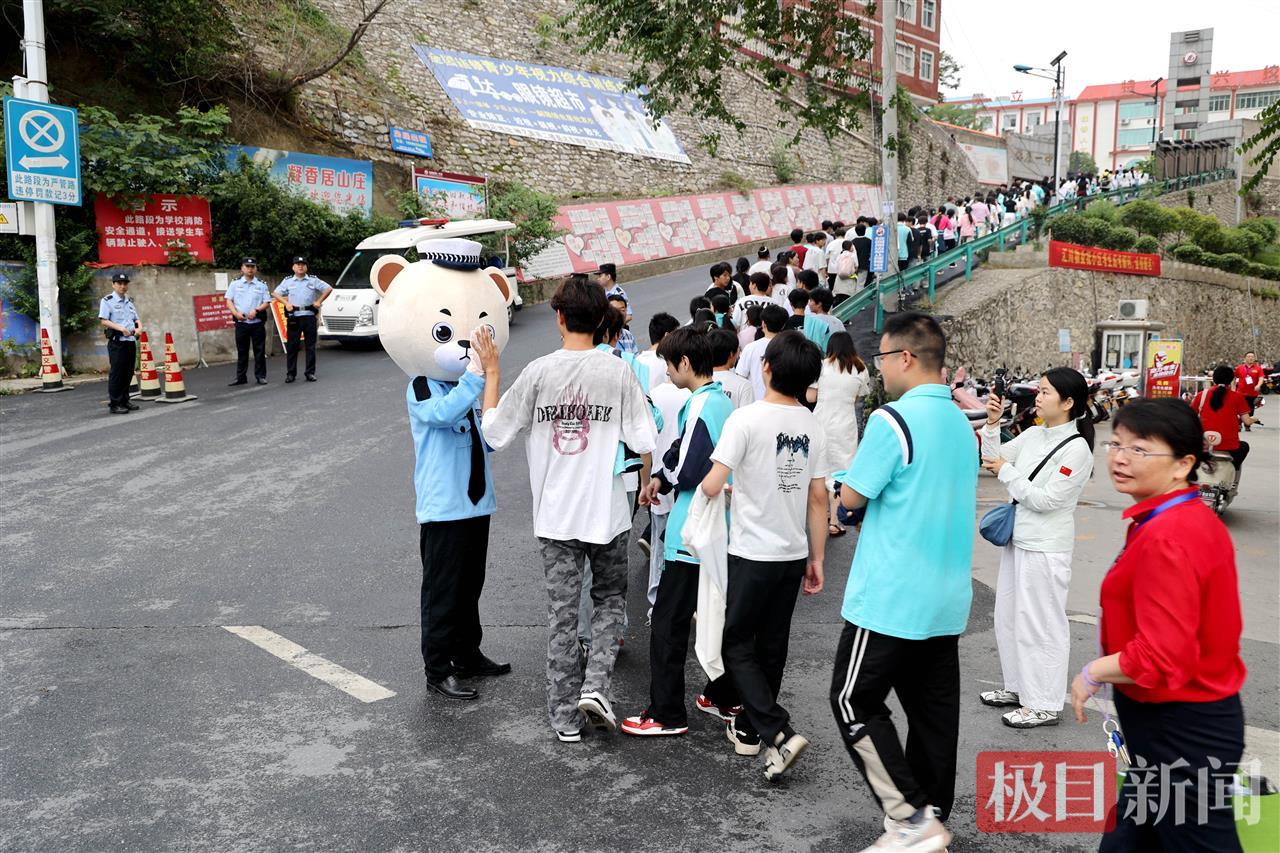 6月7日高考首日,早上七点,在湖北省襄阳市保康县一中考点外,送考氛围拉满,迎考的考生、送考的家长,服务保障的民警、志愿者等纷纷出动,警察蜀黍们还带来独特的花式送祝福,特意让警熊“安安”为考生们加油打气,祝福广大考生超常发挥,金榜题名。