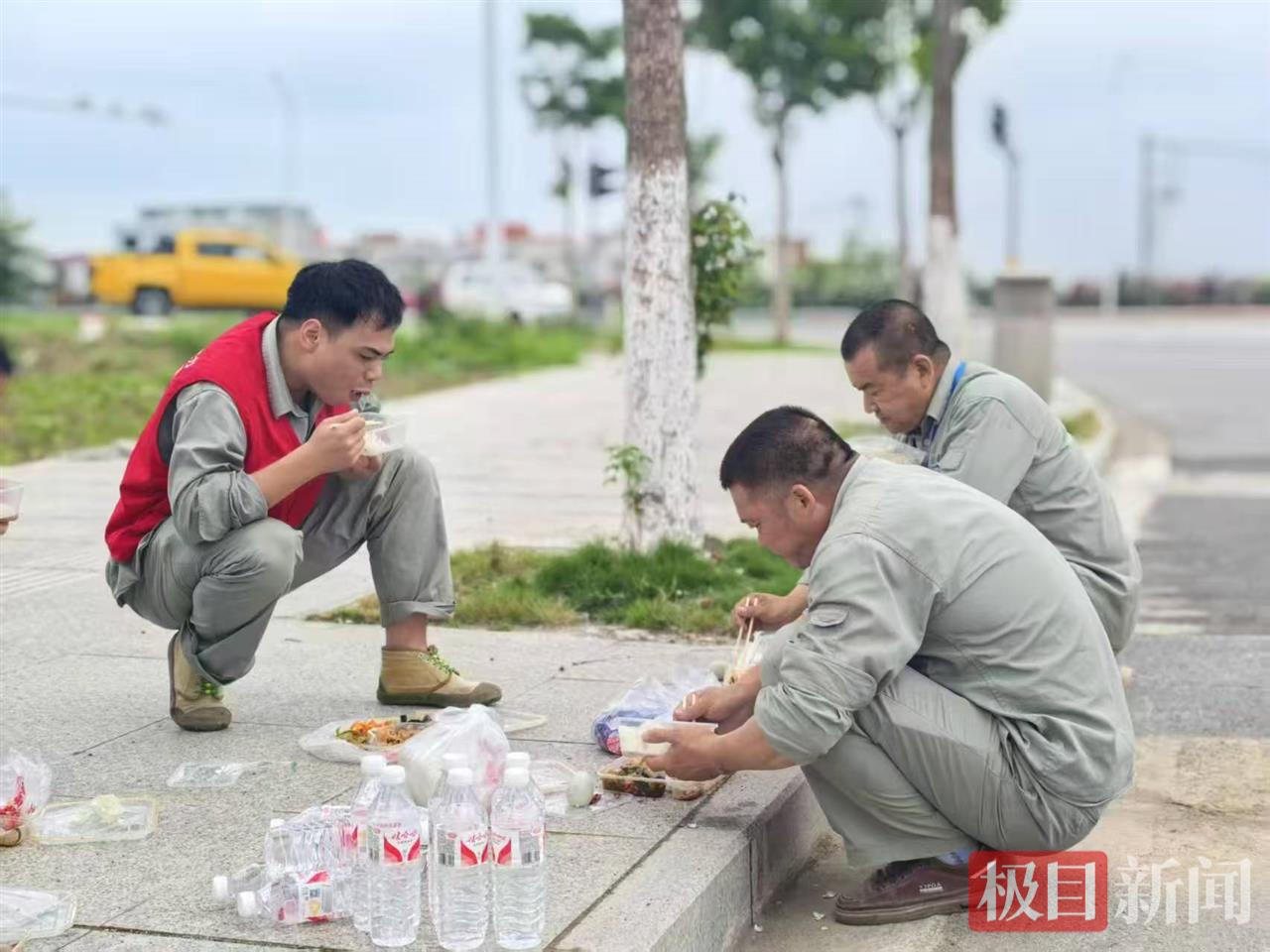 饭后,他们迅速收拾好饭盒与矿泉水瓶,带着工具包,渐渐消失在街头,又奔赴保电一线。