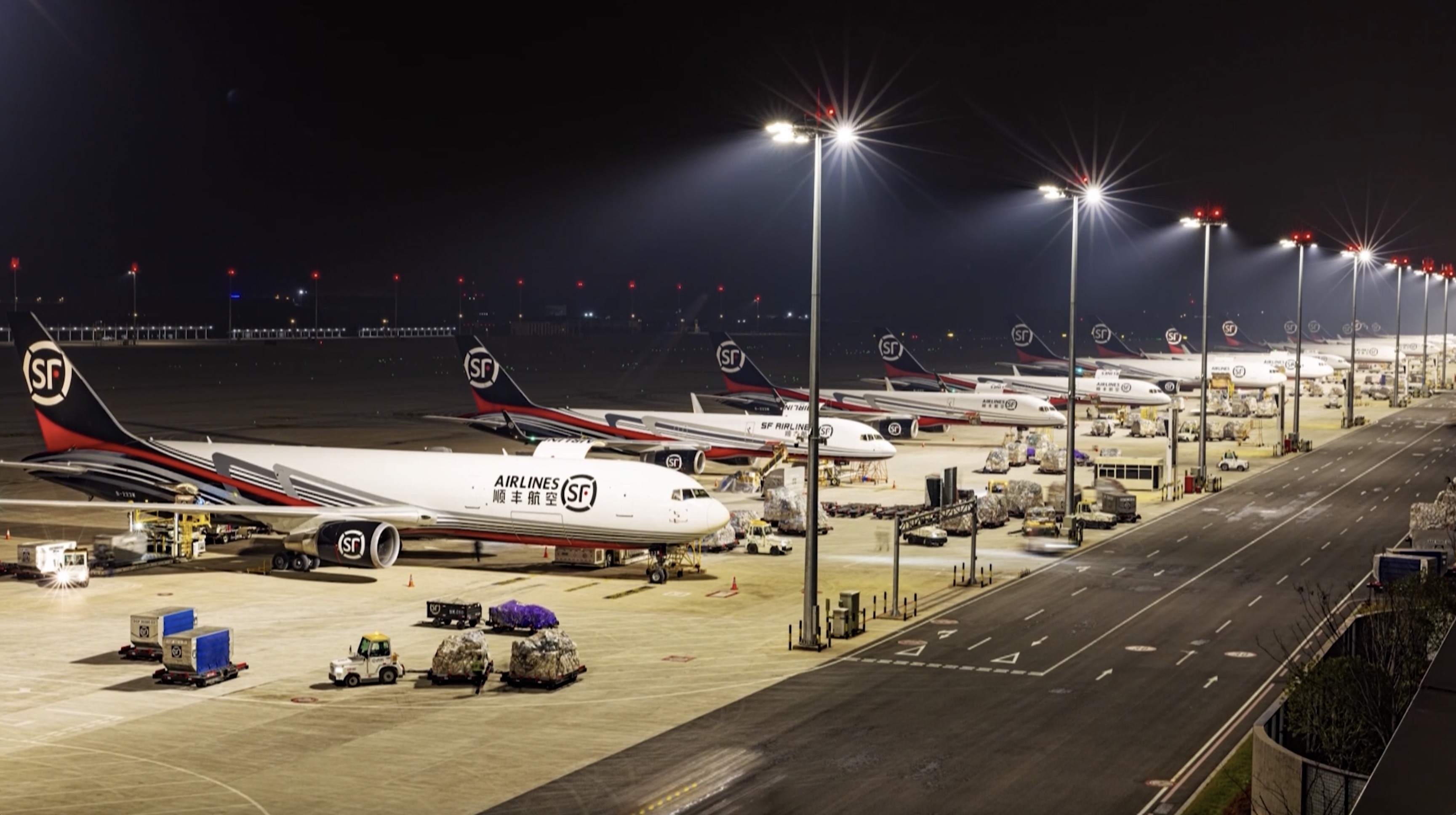 天上星光,地上灯光。夜幕降临,鄂州花湖国际机场进入最繁忙的时刻,一架满载电子产品的货机正飞往德国法兰克福。“不靠海不沿边,照样做全球生意。”机场相关负责人介绍,作为亚洲首个专业货运枢纽机场,鄂州花湖国际机场已开通100条货运航线,其中国际货运航线42条,日均起降全货机超50架(次),机场的“红眼航班”,正实现欧美主要城市“今发明至”。