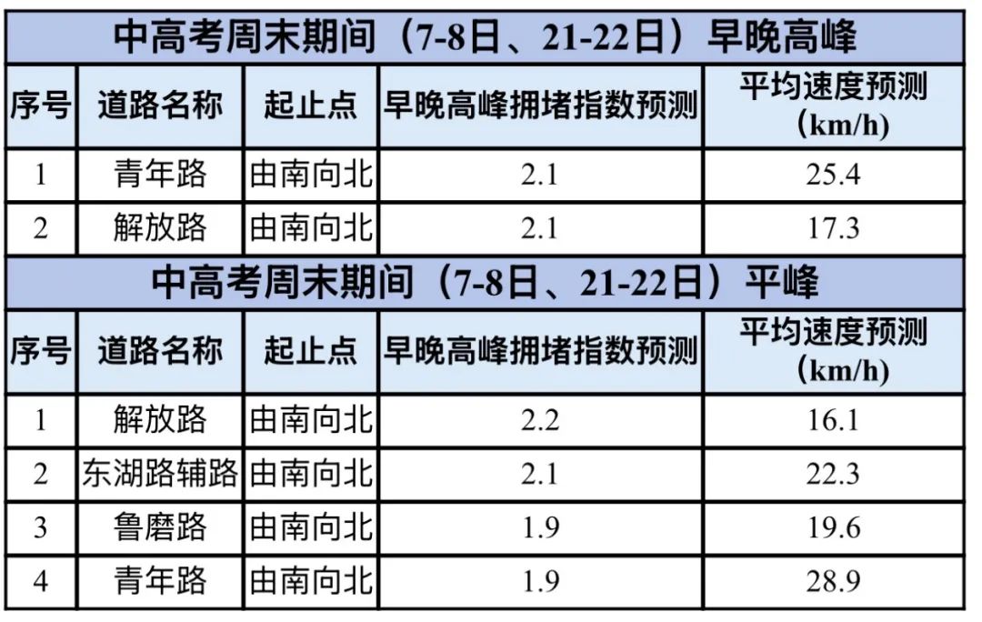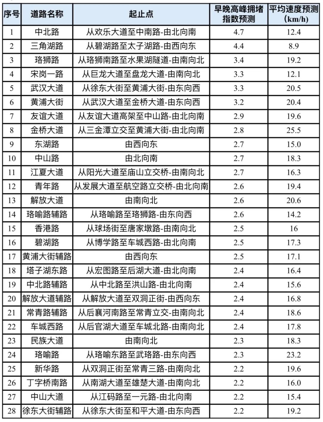 武汉交警预测中高考周末期间拥堵指数靠前的道路