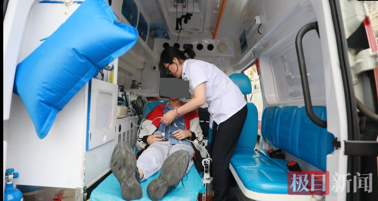 6月7日上午,小张在黄石市中医医院医护人员的陪同下,携带氧气瓶等必要救护设备,走进考场。