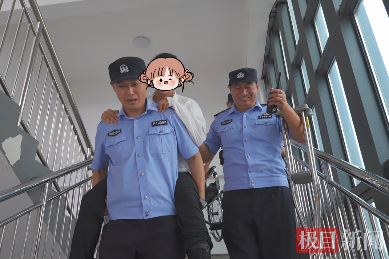 考试结束后,民警将小尹背下楼。(通讯员 供图)