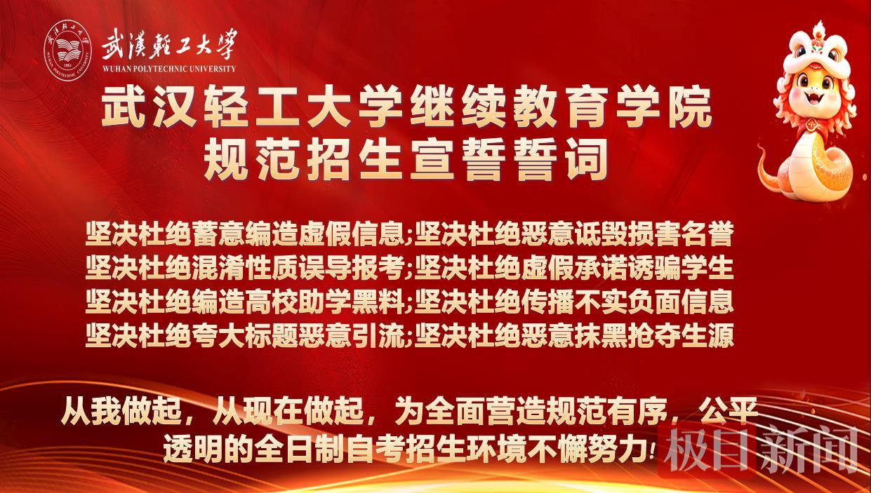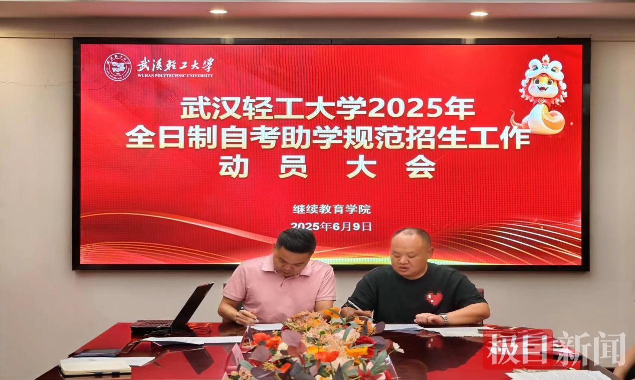 2025年6月9日,在武汉轻工大学继续教育学院庄重热烈的会议氛围中,一场持续深化规范招生大会——2025年全日制自考助学班规范招生工作动员大会圆满落幕。这不仅是一场工作部署会,更是一次湖北高等教育自学考试领域“立规矩、树新风、开新局”的深化之举。这是武汉轻工大学继续教育学院在湖北省高校继续教育联盟率先签署《湖北高等教育自学考试全日制助学班规范招生公约》(以下简称《公约》)后,持续深化《公约》落实行动,标志着湖北省在规范继续教育招生秩序、推动自考助学事业高质量发展上迈出了具有划时代意义的坚实一步,同时开启了全日制自考助学规范化、制度化建设、协同化治理、高质量发展的崭新章程。