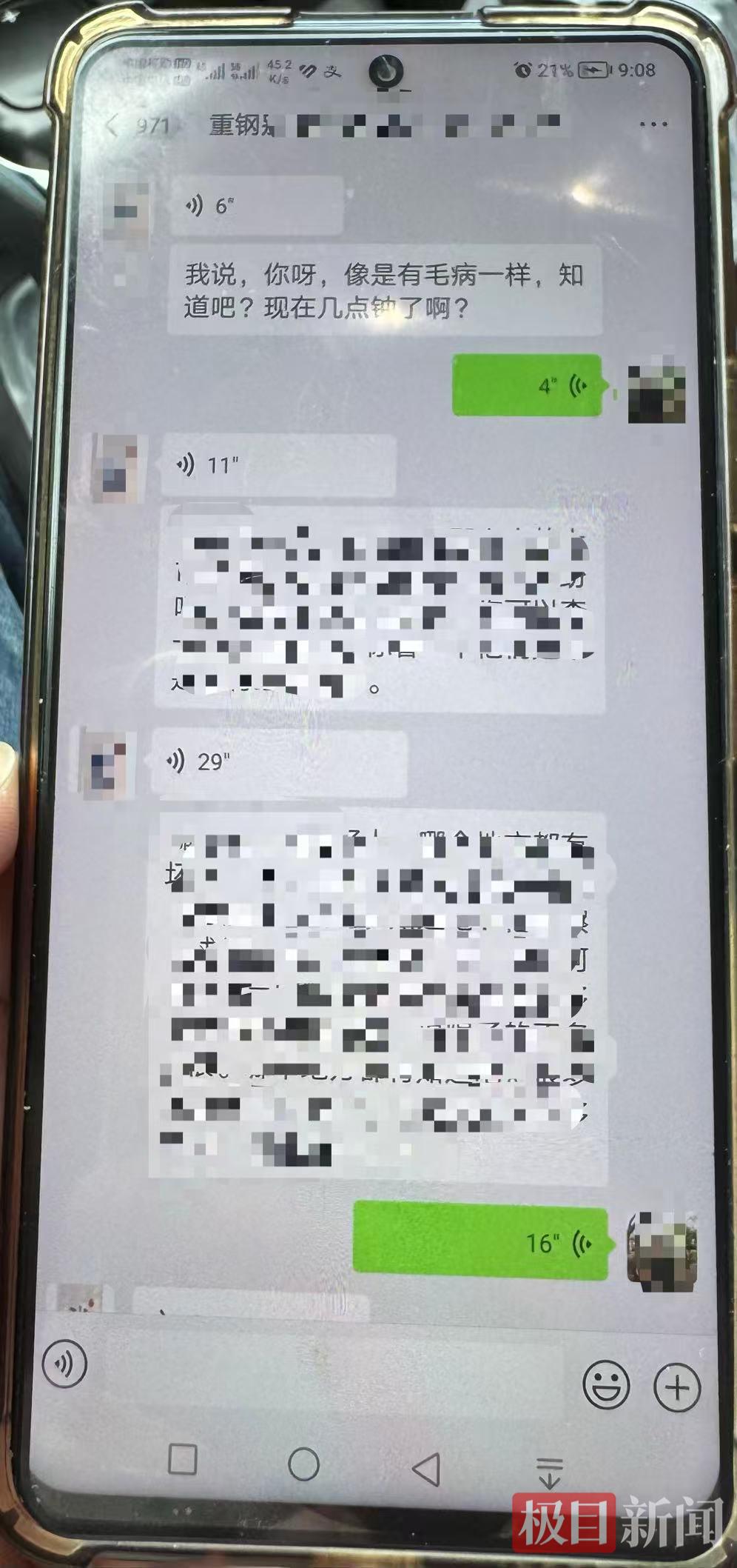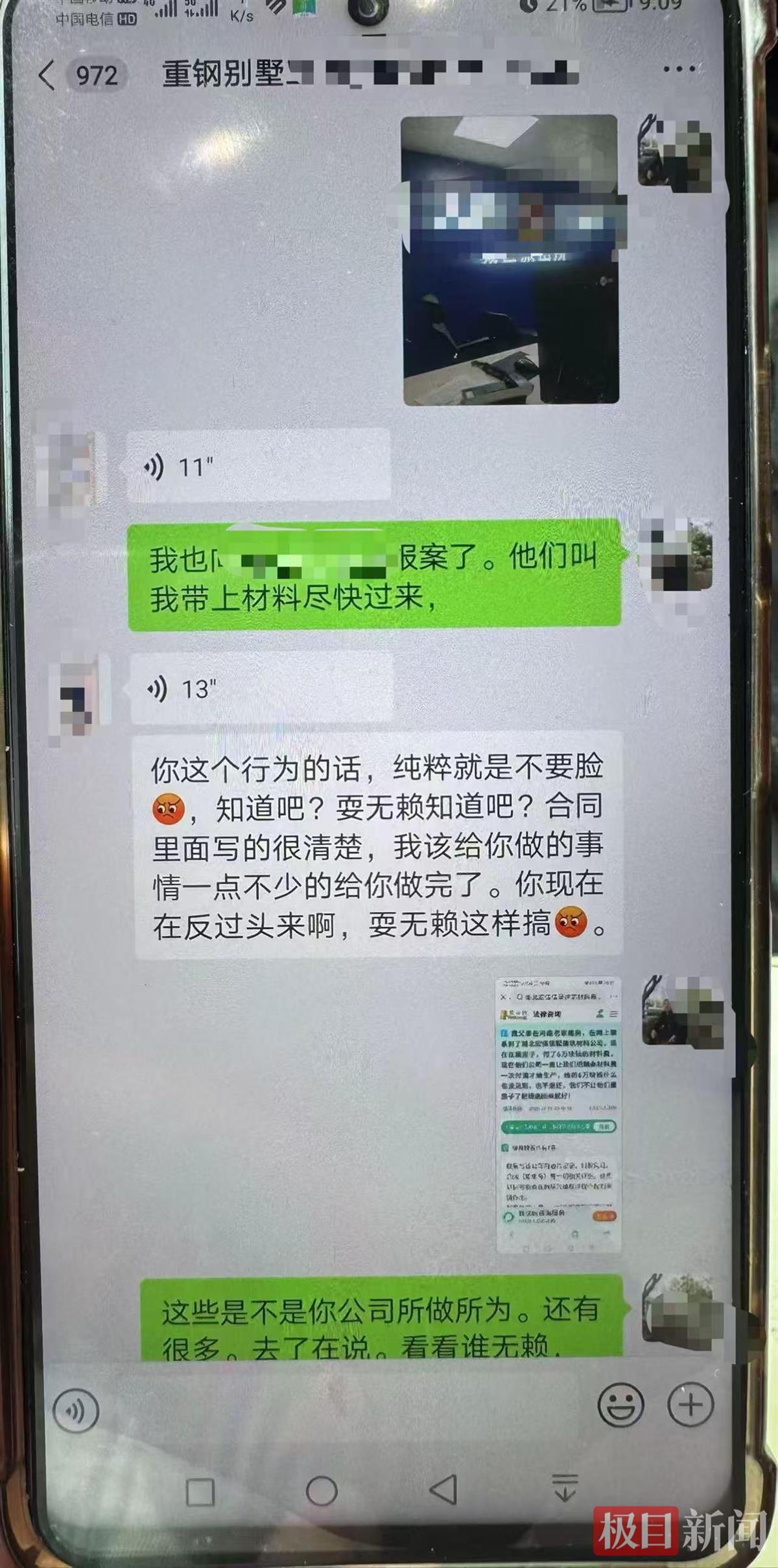 最令他气愤的是,没交钱时天天喊他“大哥”、逢节假日必发信息问候的张姓经理,已经不再搭理他了。在刘先生的手机上,记者看到,因为刘先生晚上给这名张经理发信息要说法,对方直接发语音消息骂他“像是有毛病一样”,刘先生称已经报警,对方则回复他“你这个行为纯粹是不要脸”。