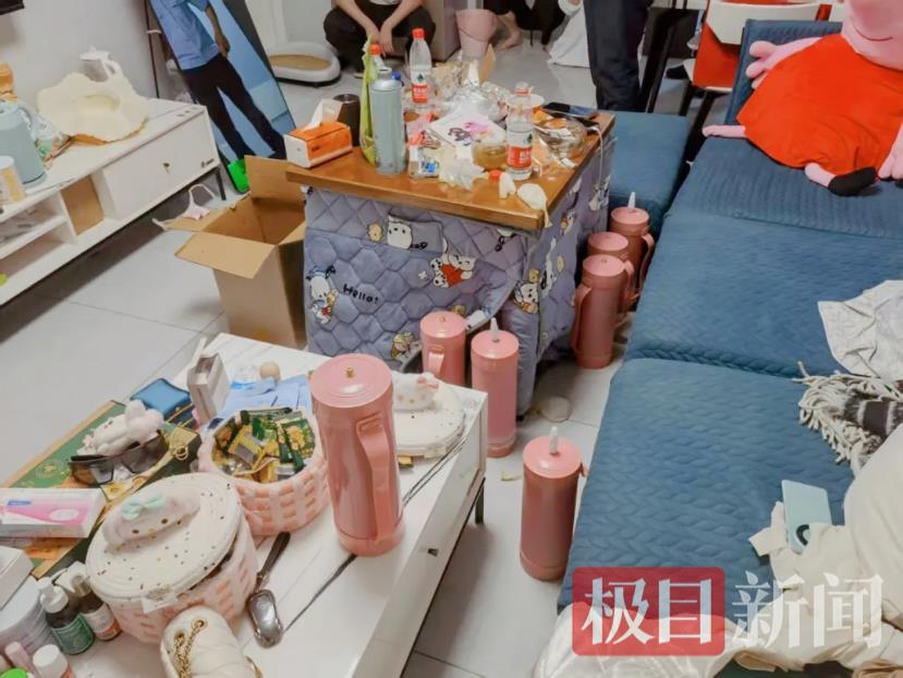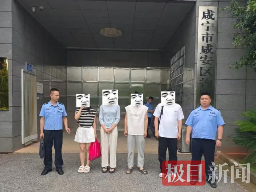 2025年5月23日凌晨2时许,咸宁市公安局咸安分局高新园区派出所接群众举报,某小区居民楼内传出持续的怪异笑声,并伴有异味。民警迅速抵达现场,在目标房间内当场查获沈某某、饶某某、刘某、方某等四人。