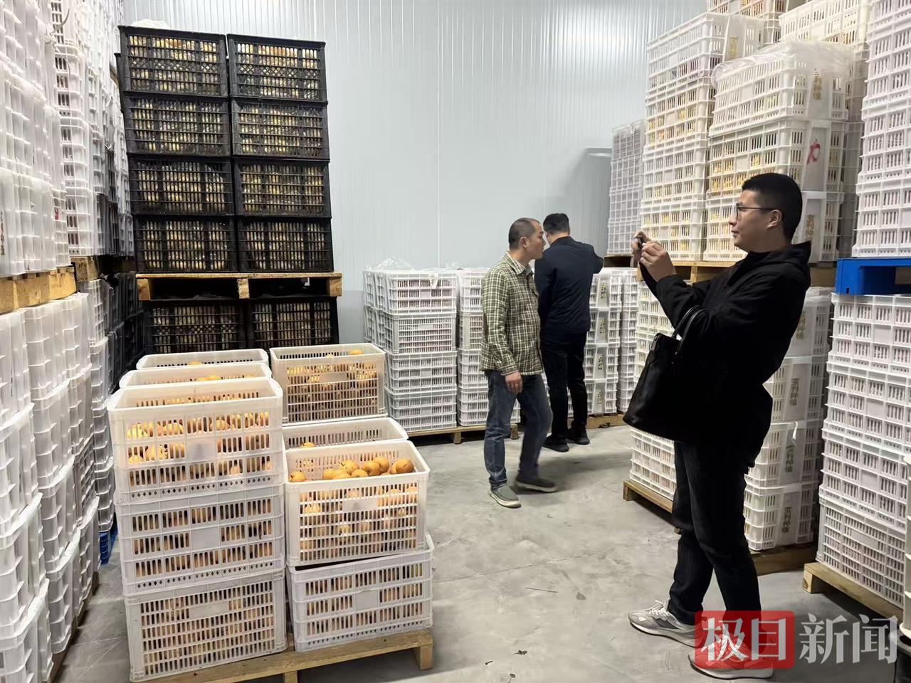 此外,村里还建成了冷链仓储中心,打开一间冷藏室的门,只有3 ℃的冰冷气息扑面而来,为了看看秋月梨的储存形态,不少记者“勇敢”走进去一探究竟,不一会儿,农村新报的记者徐思弘哆嗦着小跑出来:“衣服穿得少可不能待在里面!”