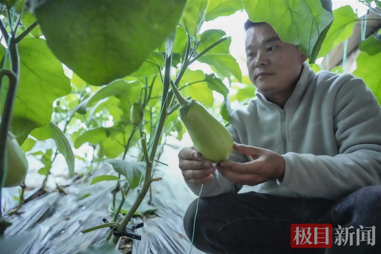傍晚时分,采访团抵达了吴店镇芝麻湾村,跟随村党支部书记杨建国的脚步走进反季节蔬菜大棚。芝麻湾村的青茄子又被称为“玉茄子”,它们修长饱满、色泽鲜亮,一只只垂挂在枝头,十分诱人。