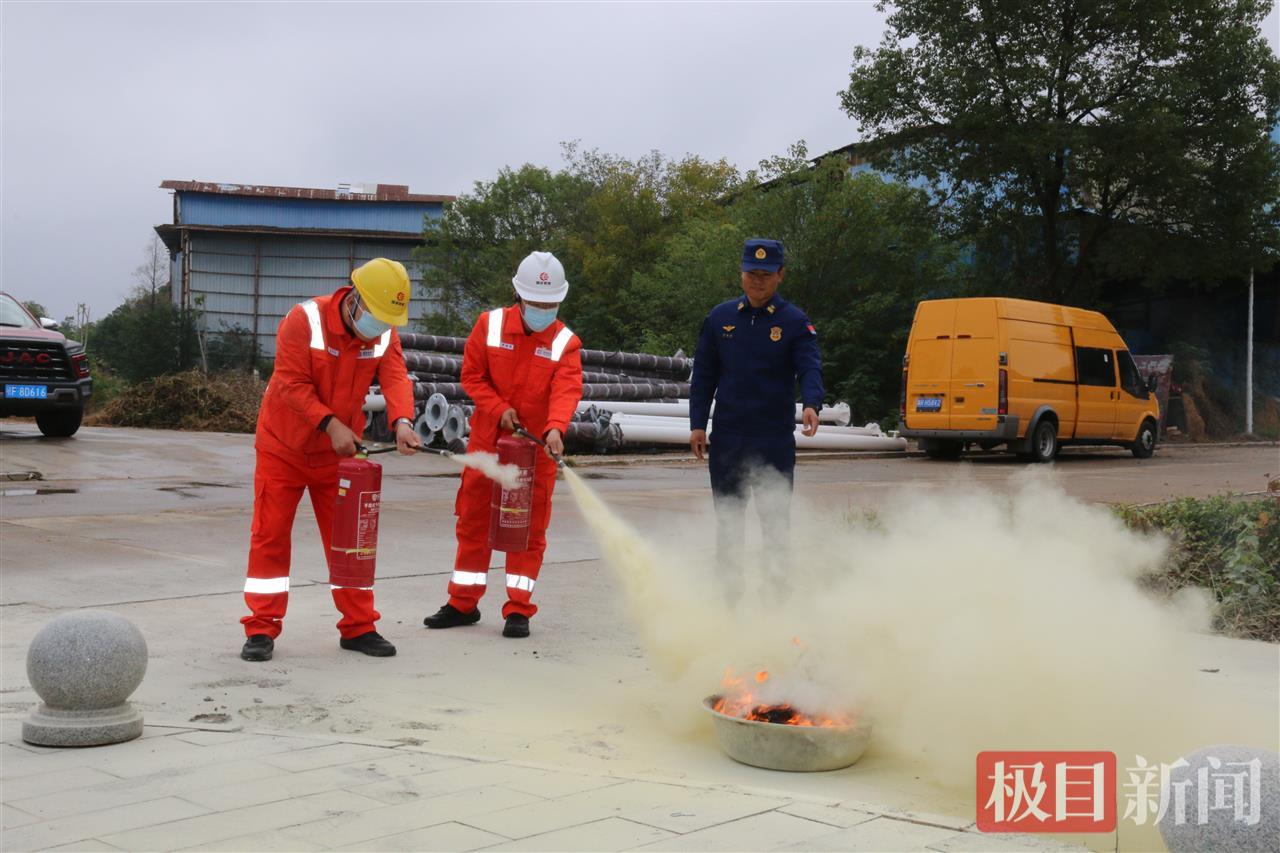 “一提、二拔、三握、四压,对准火焰根部扫射!”11月7日,在国家管网集团华中公司黄冈作业区,湖北省黄梅县消防救援大队的消防员正手把手指导企业员工使用灭火器扑灭油盆火,现场气氛紧张而有序。