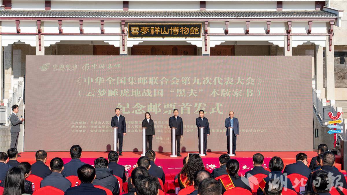 湖北日报讯(记者王欣、通讯员陈宇轩、蔡青阳)方寸藏千年,家书“邮”古今。11月13日,中华全国集邮联合会第九次代表大会在云梦县博物馆举行,会上发布了云梦睡虎地战国“黑夫”木牍家书纪念邮票,这是云梦相关题材首次登上“国家名片”,让穿越千年的“时空来信”可触可藏。