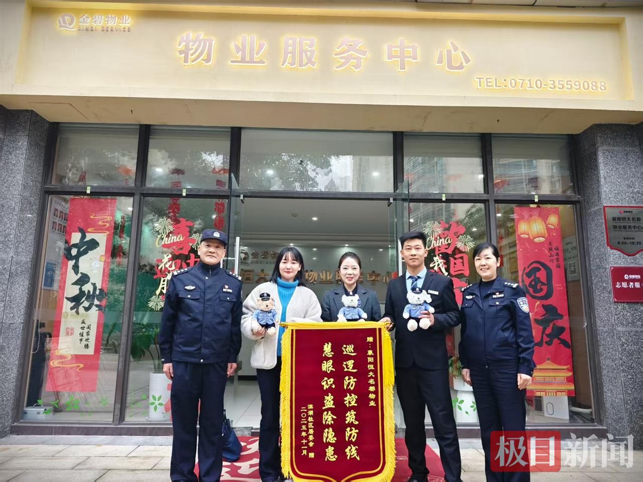 当日下午,檀溪派出所联合辖区社区工作人员专程前往襄阳恒大物业公司,为积极参与巡防、成功协助抓获嫌疑人的保安队员送上锦旗和警察小熊等表彰奖励。表彰现场,檀溪派出所负责人对恒大物业主动担当、履职尽责的行为给予高度肯定,号召辖区所有物业公司以其为榜样,进一步强化安全防范责任,持续深化警企联动机制,共同织密辖区安全防护网。