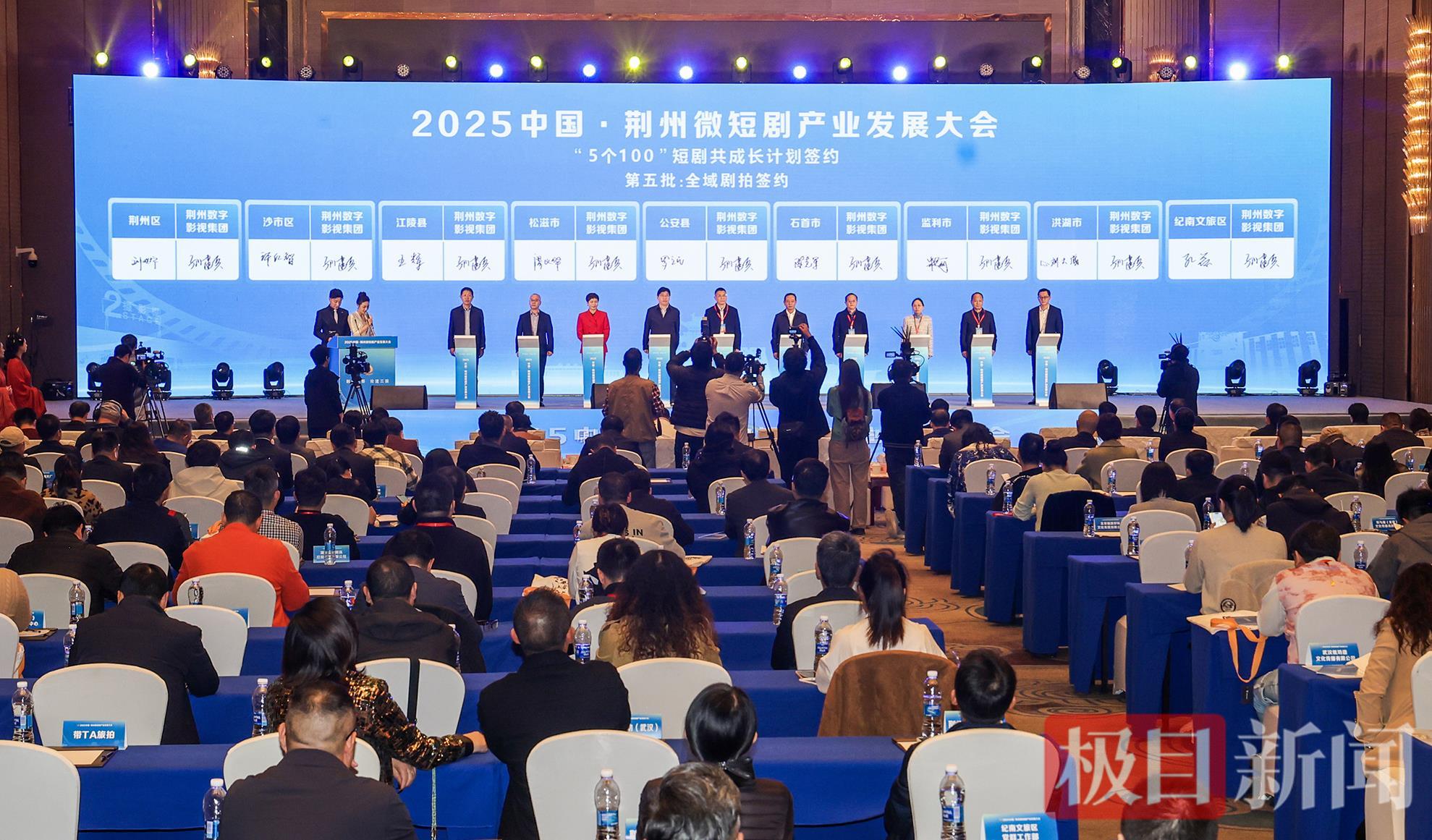 此外,来自影视界、投资方、文学创作领域和微短剧运营平台的各界精英还与荆州签订合作协议。其中,荆州影视(短剧)产业园共建项目、“荆彩计划”精品短剧共创计划、荆州三国影视基地项目、荆彩影视短剧版权交易平台项目、荆彩影视“拍在荆州”演艺服务平台项目、“荆剧贷”项目、“5个100”短剧共成长计划等一大批助力荆州微短剧产业发展的项目集中签约。