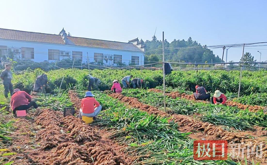 初冬时节,黄梅县下新镇曹牌楼村的田野里,却是一派火热的丰收景象。一片曾经杂草丛生的撂荒地,如今“长”出了金灿灿的希望——村党支部书记石朝明带头试种的50亩山东大姜喜获丰收。姜田里,村民们正忙着起姜、去泥,欢声笑语伴随着泥土的芬芳,汇成一曲动人的丰收乐章。