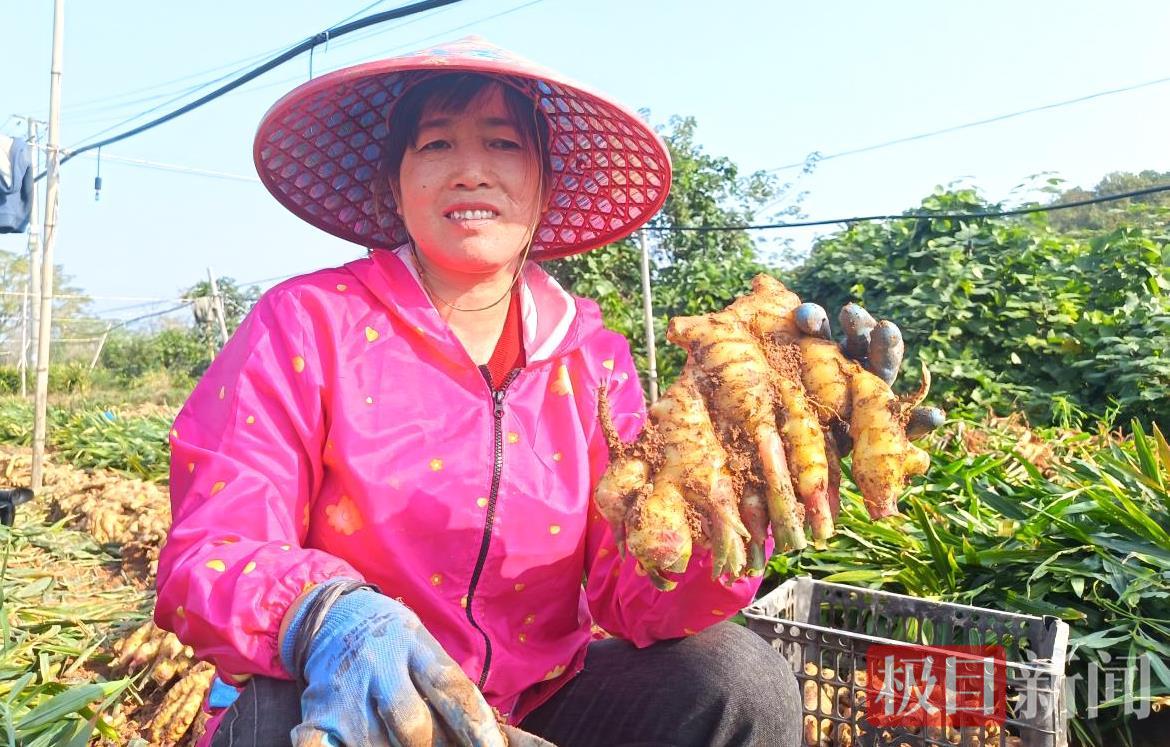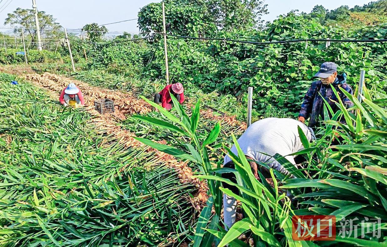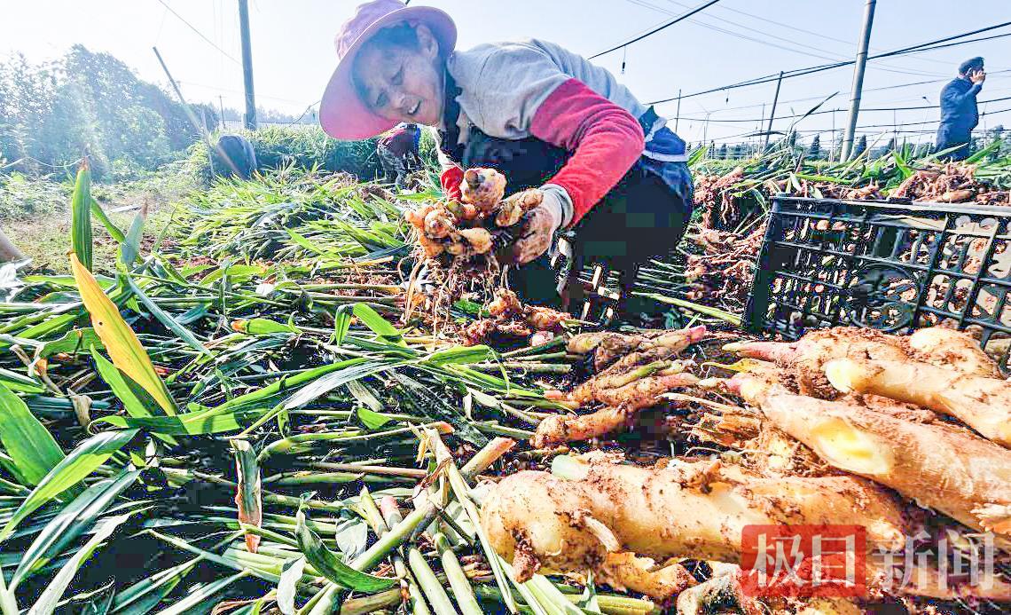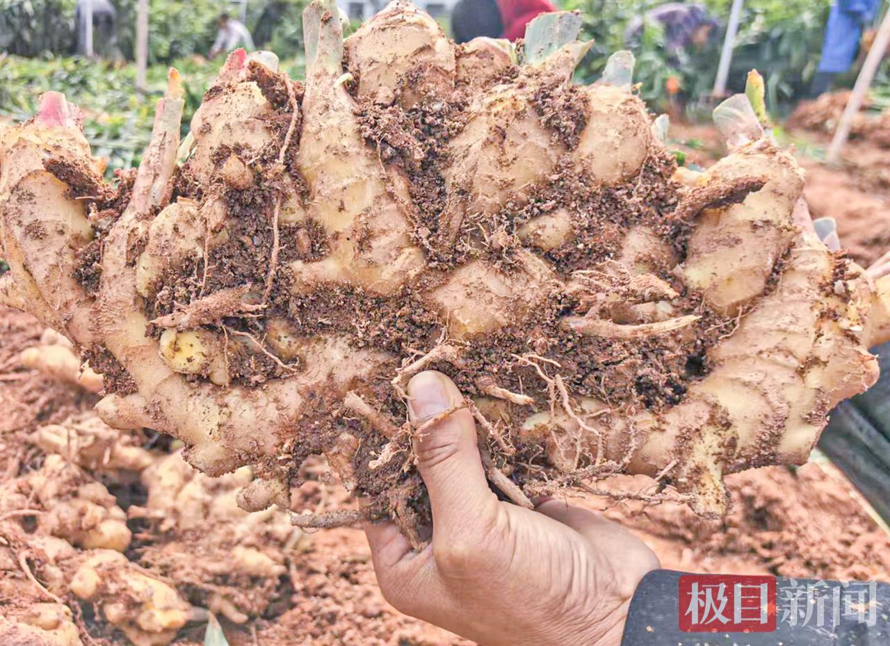 “你瞧这姜块,个头大、色泽鲜亮,品相好得很!”基地里,71岁的脱贫户李忠兵正麻利地给新挖出的生姜去泥,脸上洋溢着满足的笑容,“我在这里做工,一天能挣300到400元,这日子以前哪敢想!”