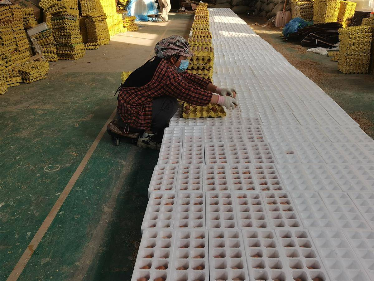 襄梦电商产业园内,工人正在分装鸡蛋。