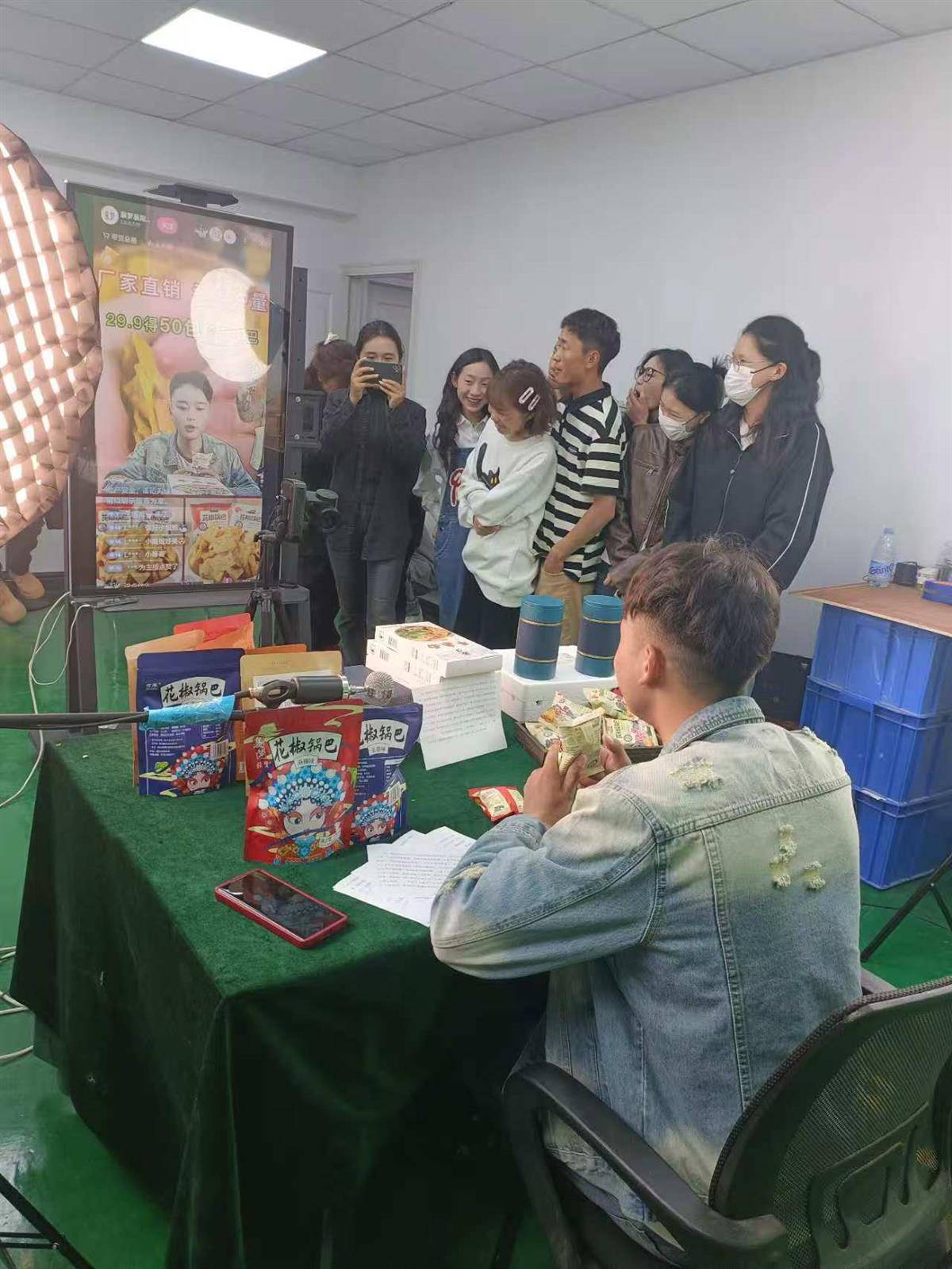 襄梦电商产业园内,主播正在直播间介绍产品。