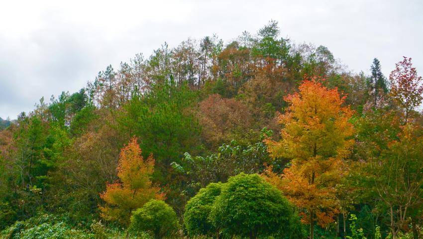 这里的冬是温吞熟稔的,不冷。长青树还攥着夏的余温,枫与栎已把褐红、金黄的色彩晕开,从山巅顺着山势,往山腰缓缓泼洒。