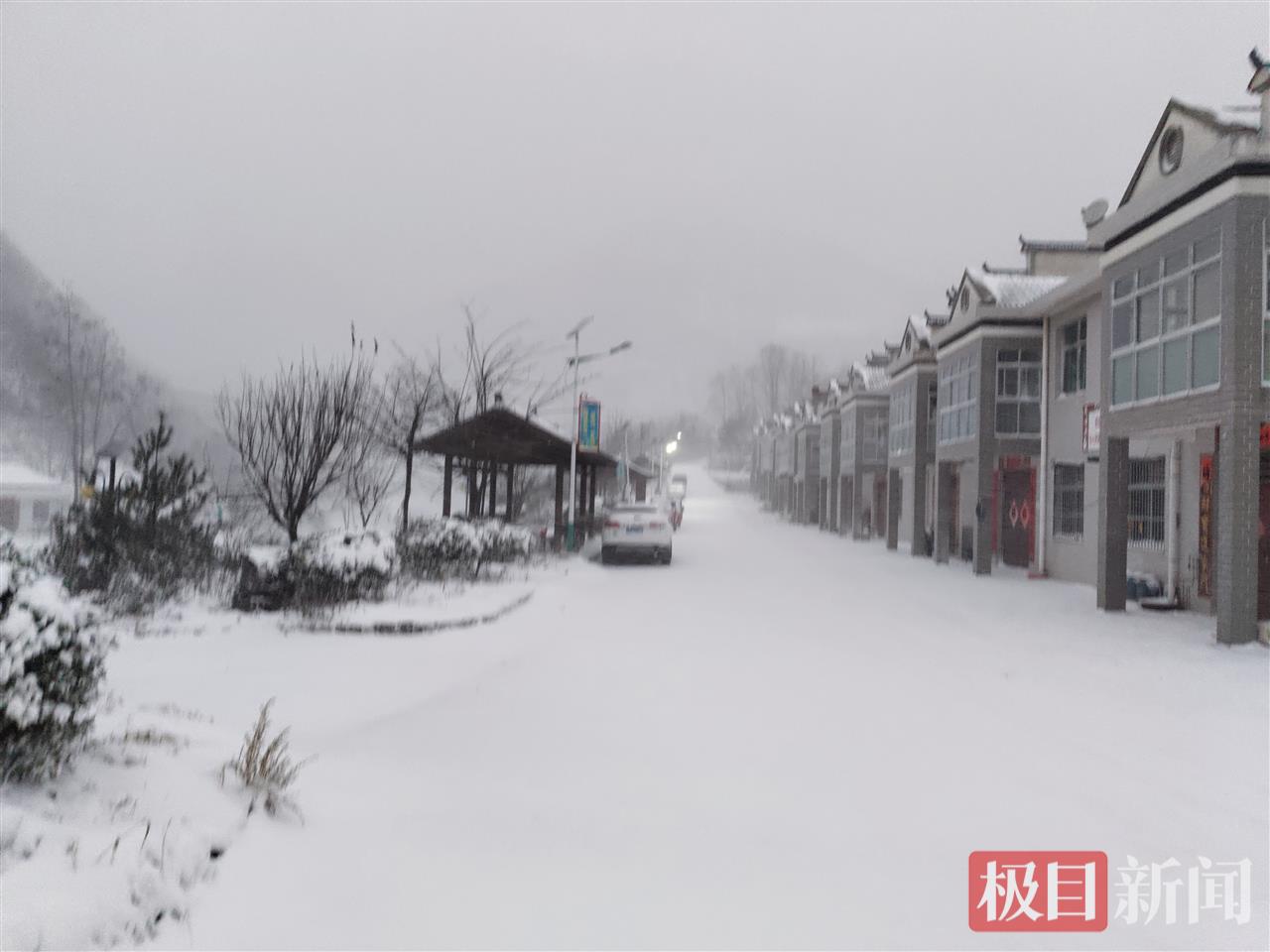11月16日晚9时许,湖北郧西县湖北口回族乡迎来了大面积降雪。纷纷扬扬的雪花如精灵般飘落,持续了一整夜,将整个乡镇装点成银装素裹的童话世界。