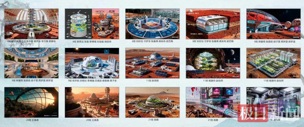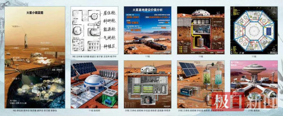 高一(9)班祝宇航小组在设计火星基地的过程中,围绕能源供应、氧气循环等关键系统展开了多次讨论,力求每个环节都符合科学逻辑。组员们自豪地表示:“一次次思想碰撞,一次次方案优化,当设计成果最终呈现在展板上时,我们深刻体会到团队协作与知识应用的成就感。”