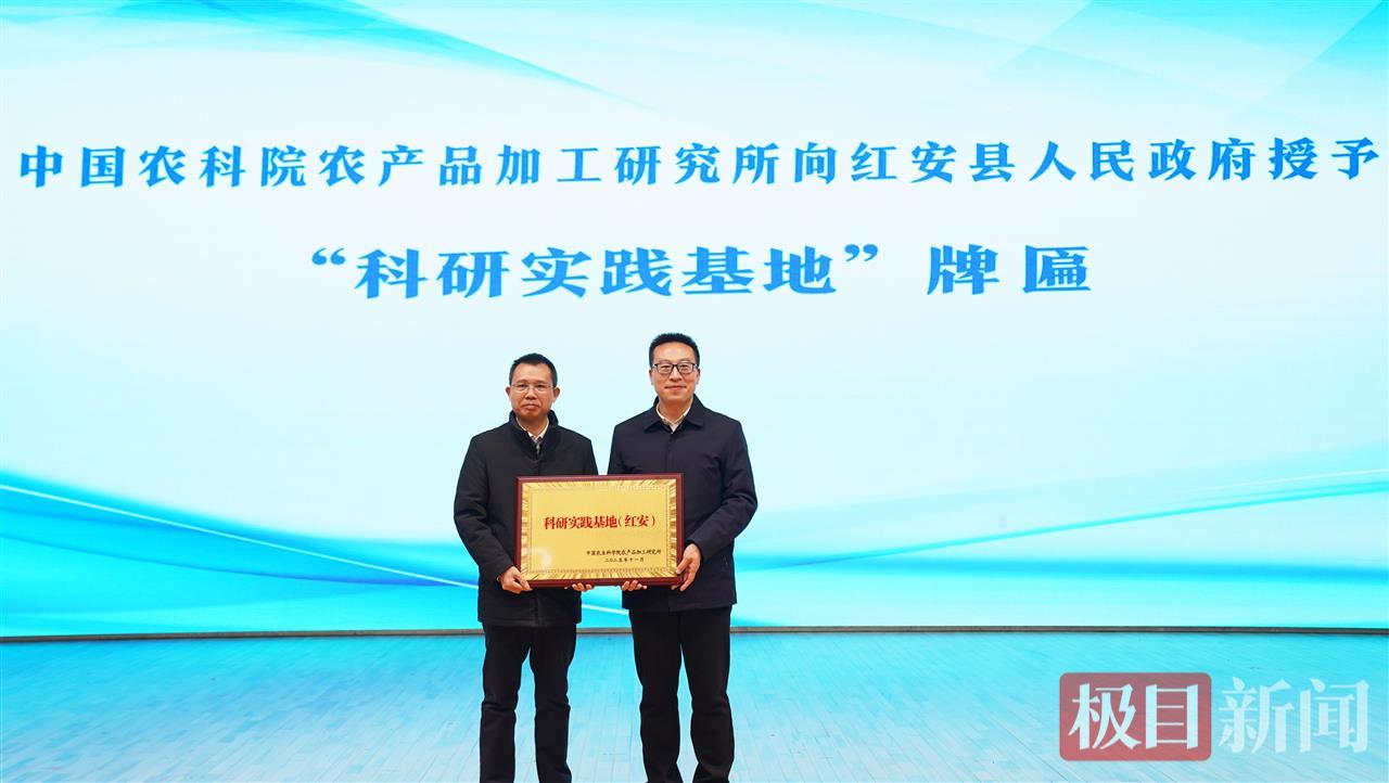 在授牌仪式上,“华中农业大学现场教学基地”“中国农科院农产品加工研究所——甘薯产业技术体系成果示范基地(红安)”“国家甘薯产业技术研发中心——科研实践基地(红安)”等牌匾花落红安。