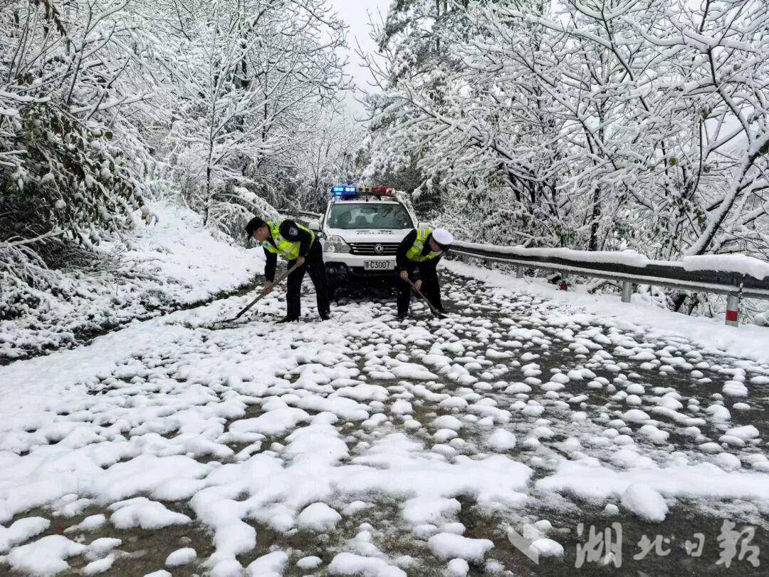 武当山景区,古建筑群银装素裹。禹迹桥旁,民警小心翼翼地搀扶着步履蹒跚的游客。一位来自福建的香客连声道谢:“这么冷的天气,没想到还有你们守护在这里。”同样,在十堰城区,交警岗亭、公交场站变身“临时驿站”,为过往群众提供热水暖身。