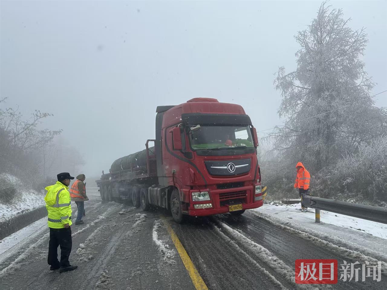 线下,巡逻民警对过往车辆逐一进行安全引导,耐心叮嘱司机谨慎驾驶、及时安装防滑链,并备好三角木等应急工具,坚决杜绝超速、超载等危险行为。当天,民警已成功协助20余台受困车辆脱困,有力保障了辖区道路交通在恶劣天气下的安全平稳。