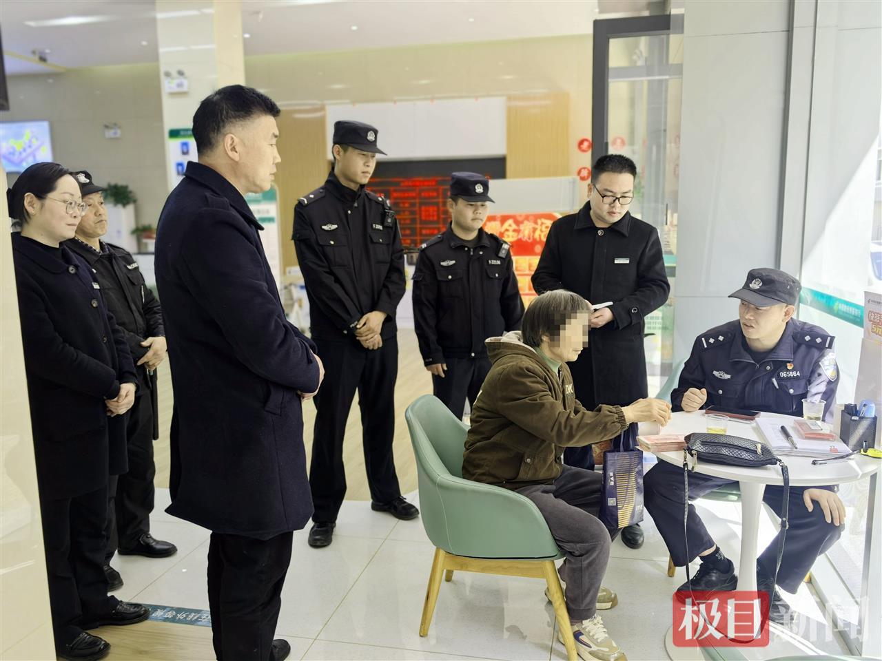 民警在银行劝阻村民转账