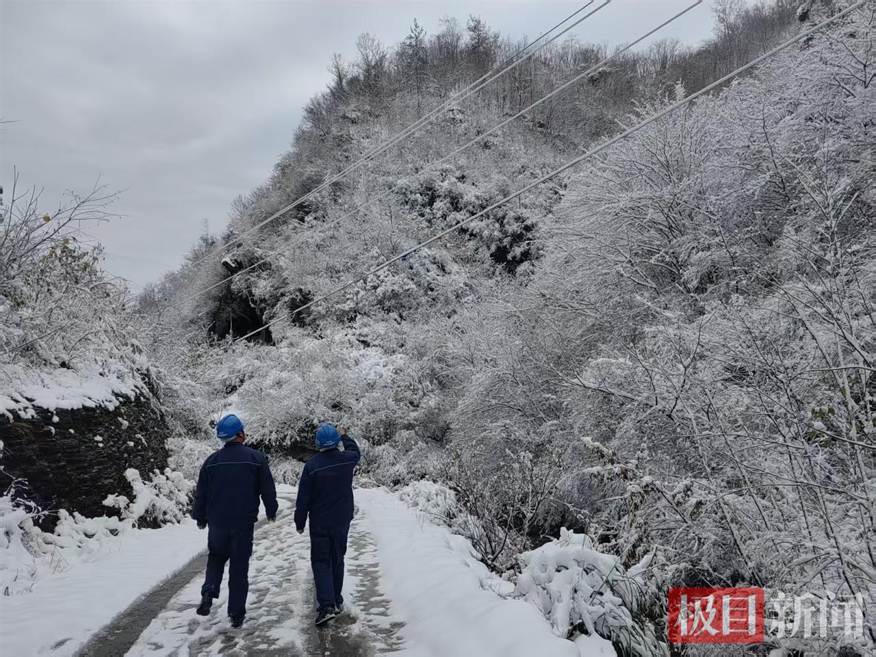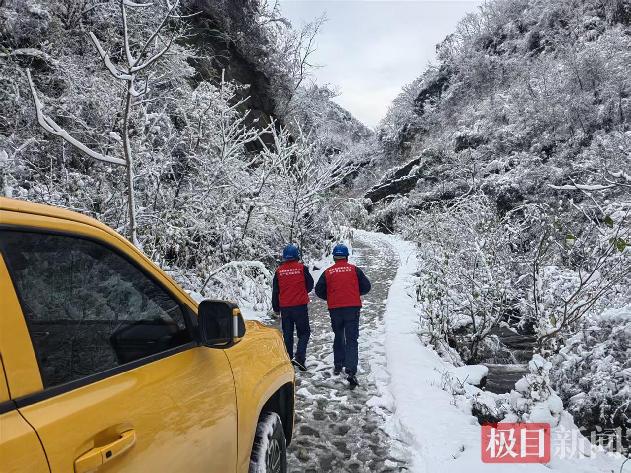 11月17日,湖北十堰竹山县迎来今冬首场降雪,官渡、双台等区域雪量较大,覆雪、积冰给山区供电线路带来安全隐患。国网竹山县供电公司迅速启动低温雨雪天气保电预案,组织各供电所人员紧急奔赴一线,开展巡线、除障等保电工作。