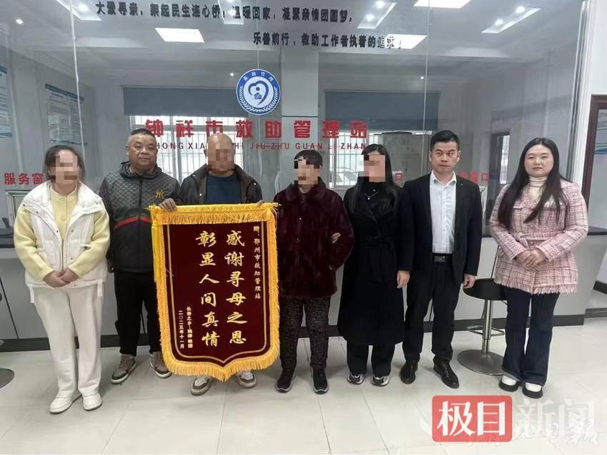 近日,钟祥市旧口镇居民姚某某手持一面印刻“感谢寻母之恩,彰显人间真情”的锦旗交到鄂州市救助管理站工作人员手中。这面满载敬意的锦旗,见证着一个家庭跨越十年的漫长等待,更是对救助站工作人员十年如一日、接力寻亲的最高褒奖——在他们的不懈努力下,姚妹走失十年的母亲终于结束漂泊,与亲人温暖重逢。