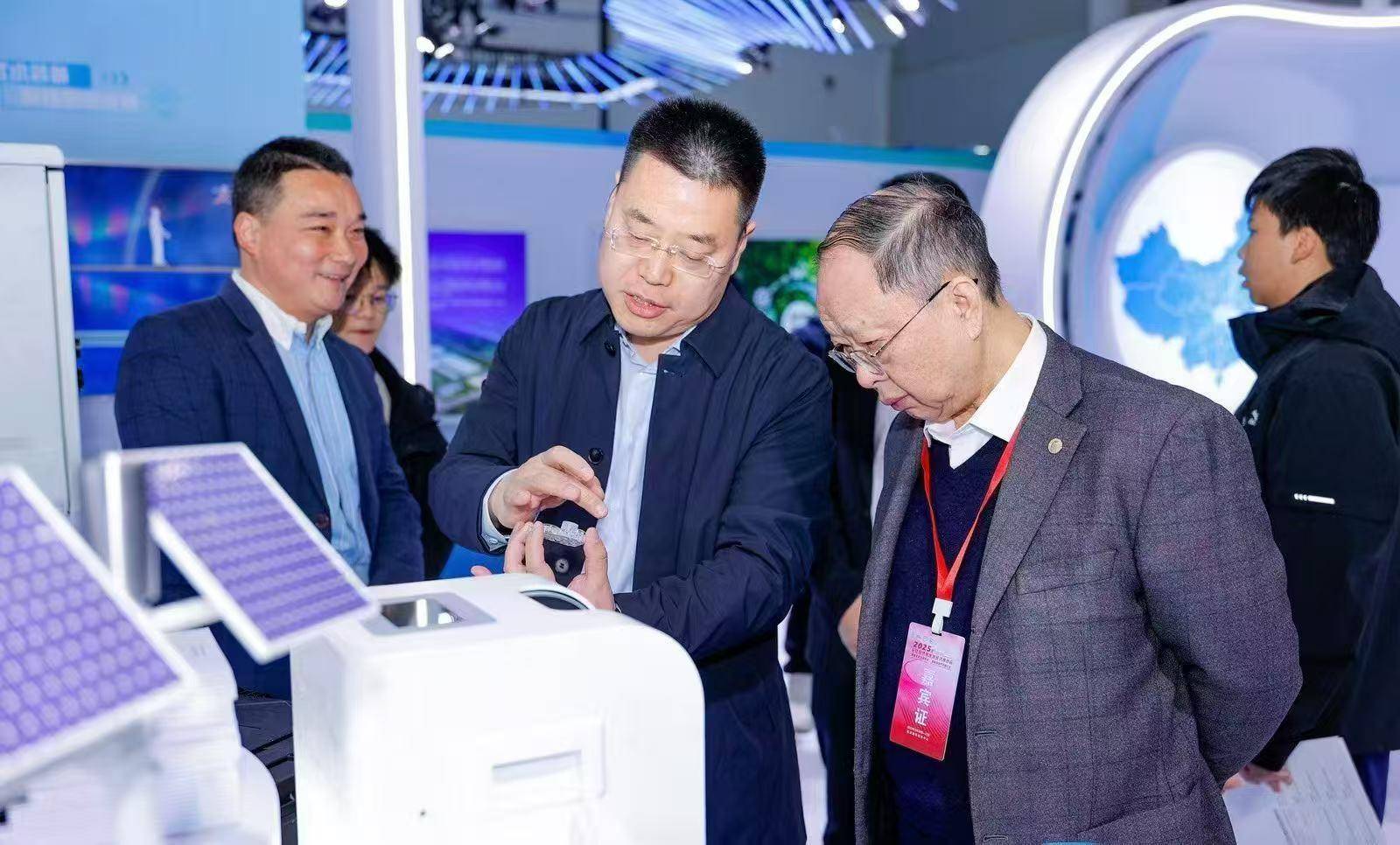 新烽光电工作人员在展会上介绍企业技术。(受访对象供图)