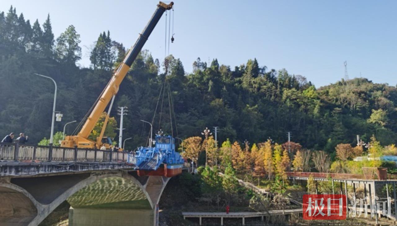 伴随吊车臂缓缓舒展,一艘崭新的清漂船在近日在湖北省宣恩县三河沟大桥水域平稳入水,正式投入使用。这标志着宣恩县河道漂浮物清理告别主要依靠人工作业的传统模式,迈入机械化、高效化的新阶段,为守护“水清岸绿”再添利器。