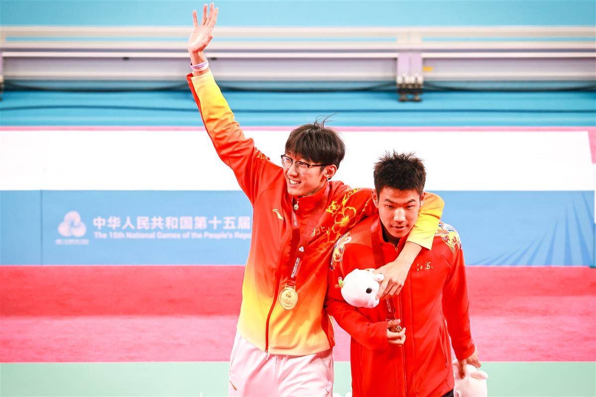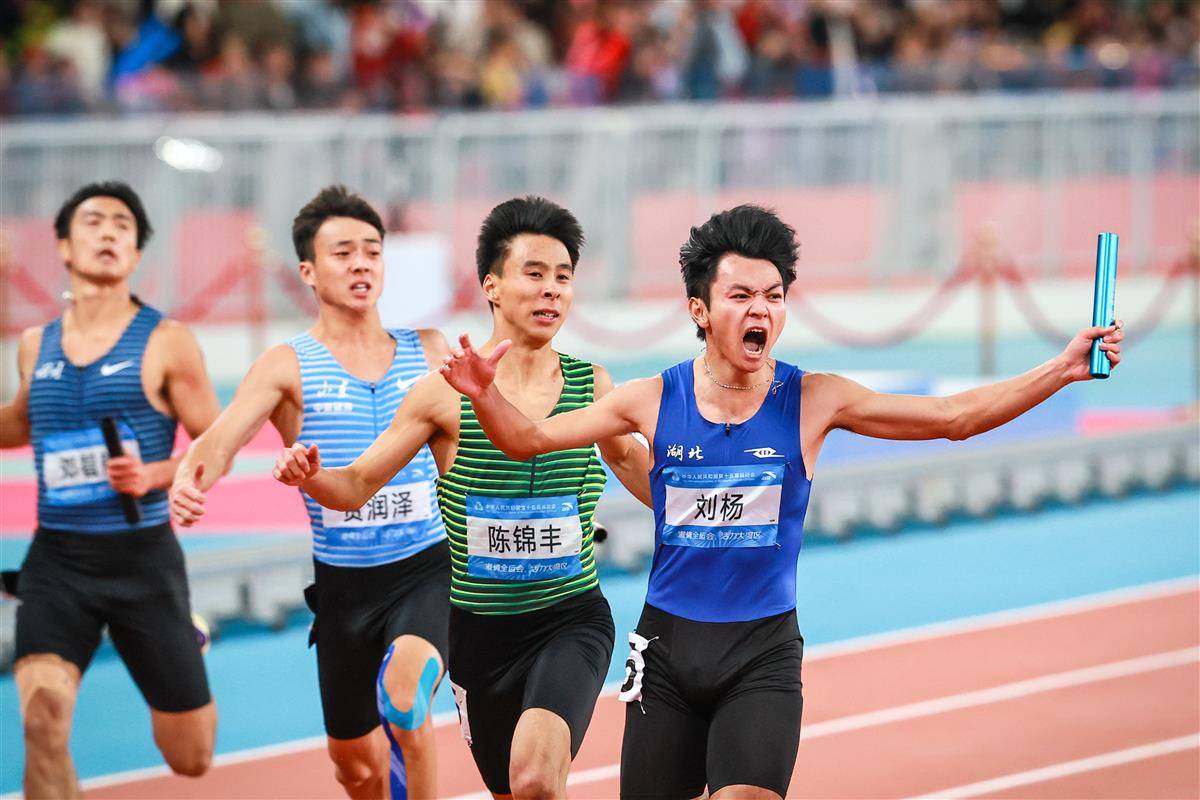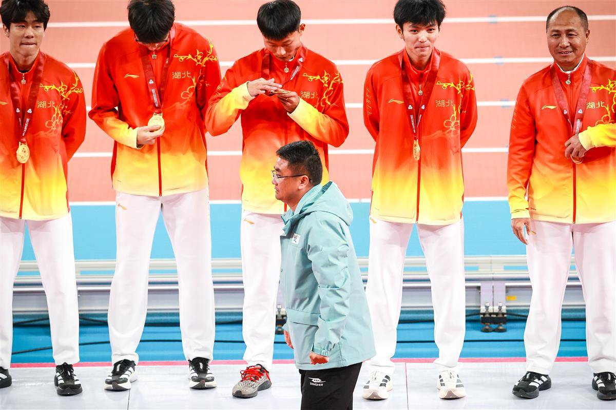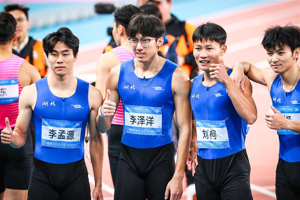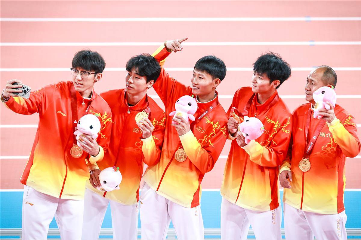 11月20日,第十五届全国运动会田径项目男子4×100米接力决赛在广州举行,湖北队斩获冠军。(湖北日报全媒记者 时龚 摄)