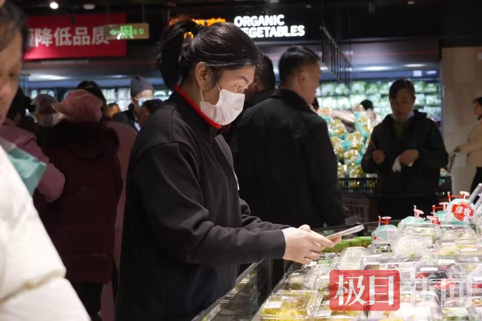 “现在工作环境更好,福利也更完善,我们服务顾客时更有干劲。”门店蔬果区员工小刘一边整理货架一边笑着对记者说。