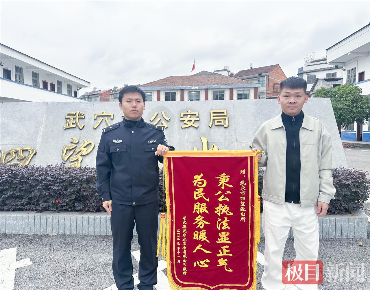 “感谢警察同志快速破案,帮我们挽回了近九万元的损失!”11月17日,为表达感激之情,企业负责人董先生专程来到四望派出所,将一面印有“秉公执法显正气,为民服务暖人心”的锦旗郑重交到民警手中。