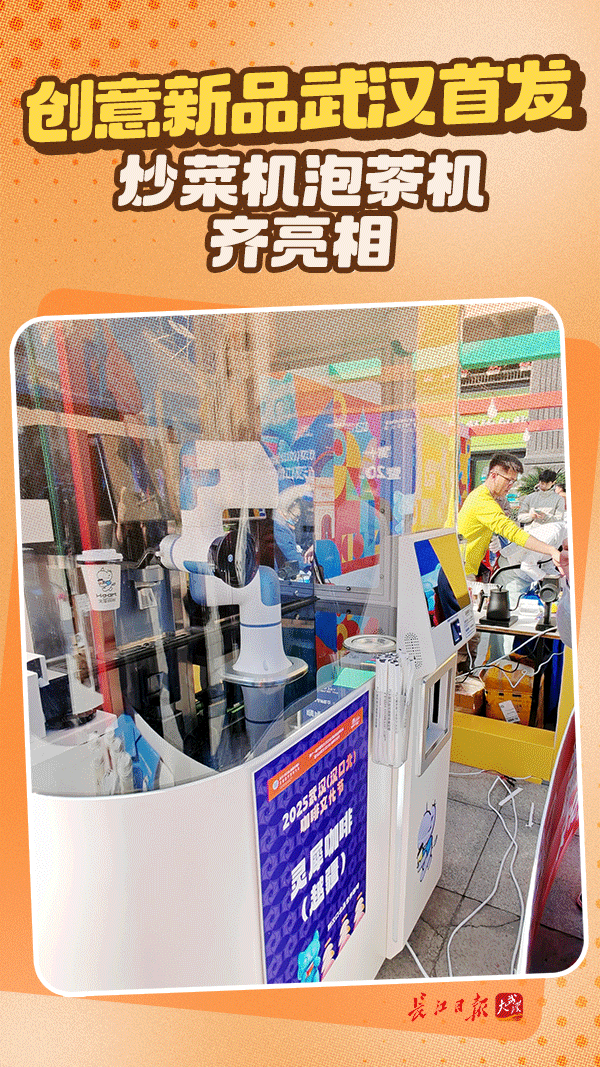 汉口北国际贸易城里,一台银色炒菜机前面,围了不少好奇的观众。