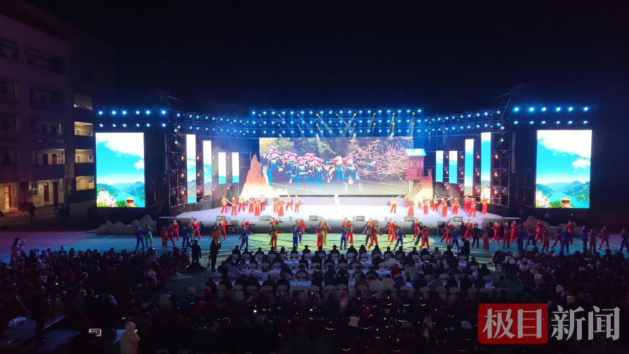 巴风悠扬润山乡,文化资丘入梦来。当晚,“巴风土韵·非遗里的资丘”国家级武陵山区土家族苗族文化生态保护成果展示展演隆重举办,演出共分“相约武陵、梦幻土家、清江恋歌”三个篇章,土苗儿女同台,精彩演绎不断。山歌嘹亮,回荡在夷水之滨;南曲婉转,诉说着土家情怀;撒叶儿嗬的粗犷,跳出土家山民的生命豁达;板凳龙的豪迈,舞出了新时代的生机盎然;毕兹卡的语言醇厚,土家幺妹盛情难却。各地各民族搭建起跨越省际、联动区域的文化交流平台,交流互鉴民族民间文化。