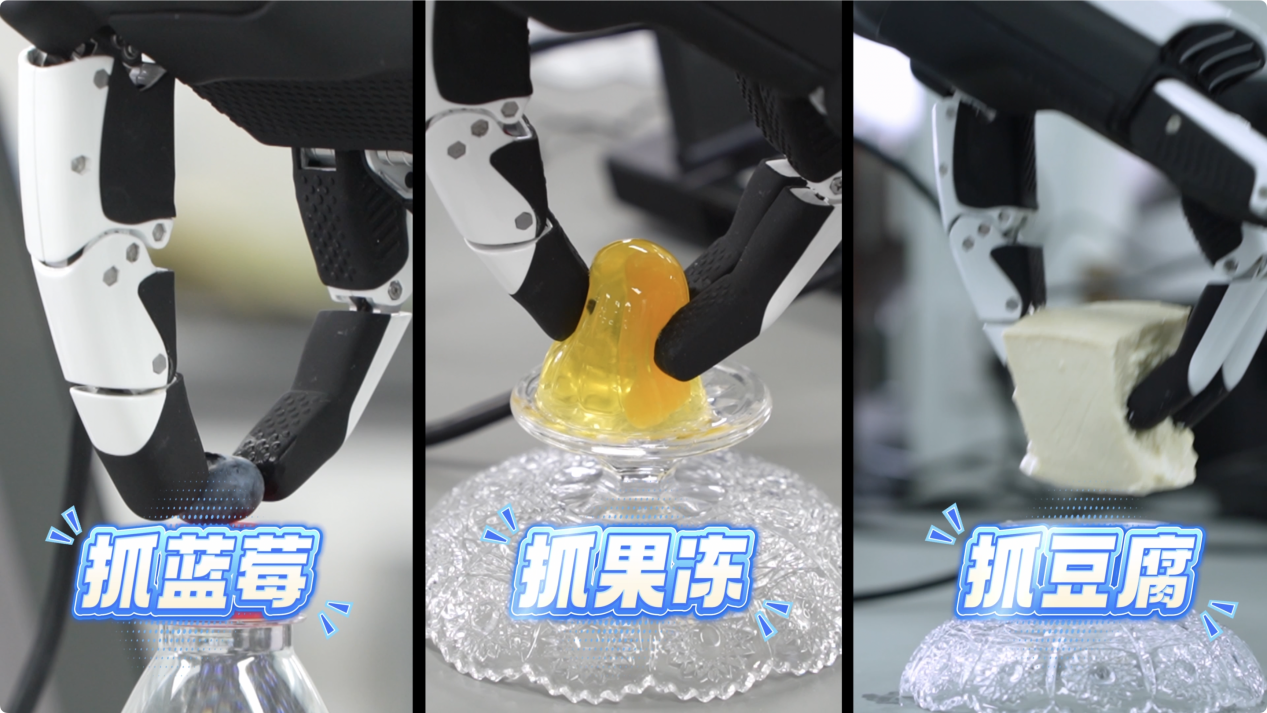 华威科灵巧手能精准抓握豆腐、果冻、蓝莓