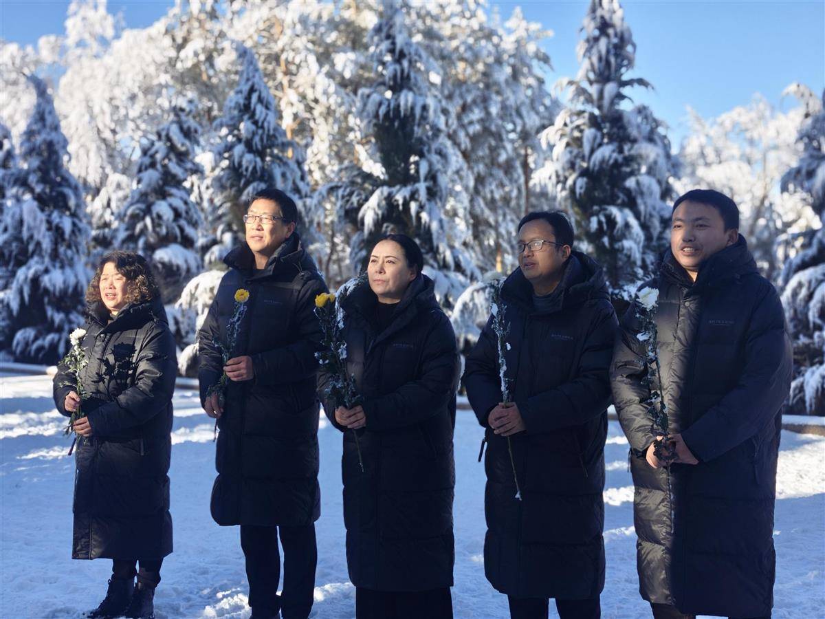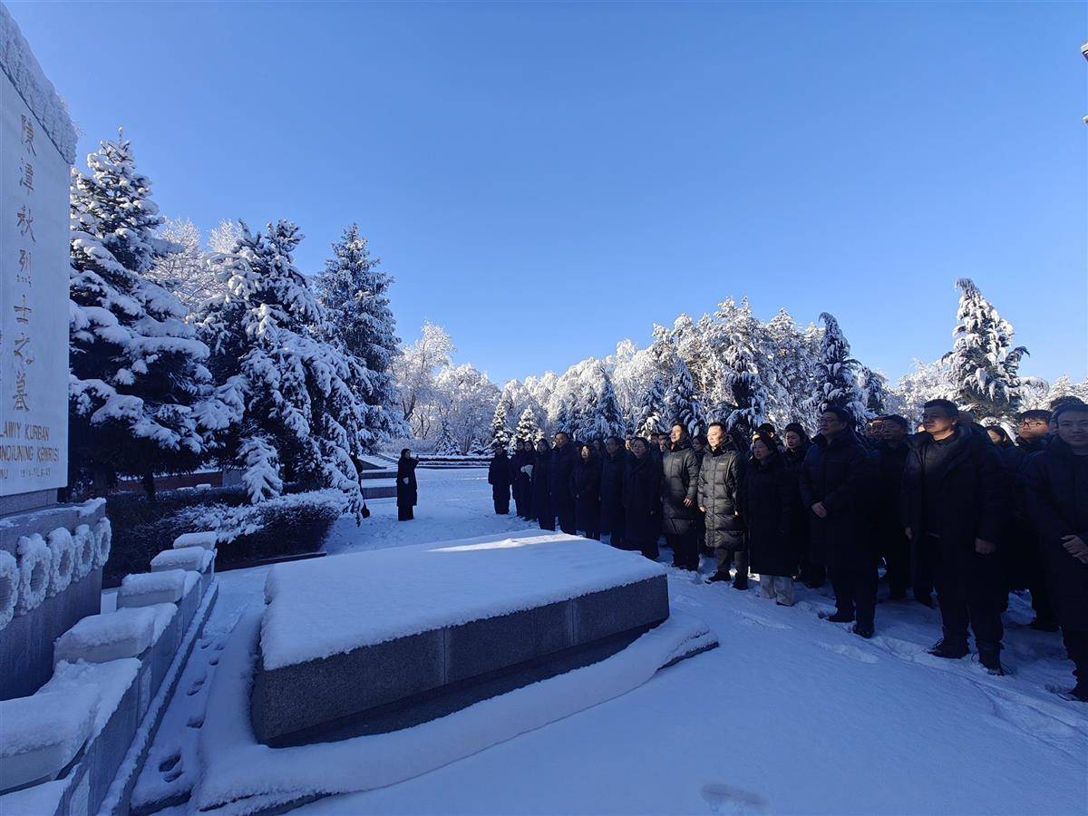 上午11时许,在庄严的革命烈士纪念碑前,剧组代表敬献花篮,全体人员静默肃立,行鞠躬礼,深切缅怀为中国革命和新疆解放事业建立不朽功勋的先烈。随后,剧组全体党员在纪念碑前重温入党誓词,铿锵的誓言在陵园内回荡,表达着继承先烈遗志、不忘初心使命的坚定信念。在陈潭秋、毛泽民、林基路等烈士的墓碑前,演职人员们驻足瞻仰,默默追思。