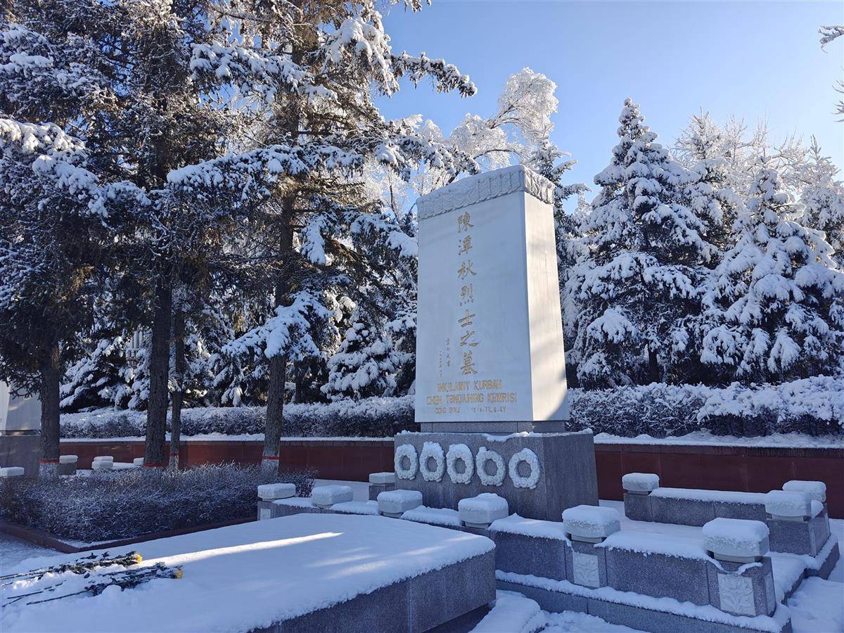 湖北日报讯(记者曹雯、通讯员张璨)苍松白雪,映照忠魂。11月23日,大型红色黄梅戏《铸魂天山》剧组在乌鲁木齐烈士陵园,与湖北黄冈籍英烈陈潭秋完成了一场跨越时空的“重逢”。