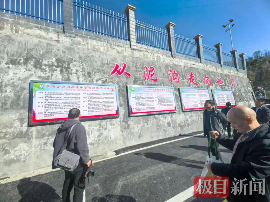 泥沟中学的大门口,“从泥沟走向世界”七个大字在阳光下格外耀眼。40名“学霸简介”构成的荣誉墙,每一张照片的背后,都藏着一段奋斗的故事,诉说着这所乡村中学的辉煌。郧阳区教育局柯局长、景阳乡党委晏书记、曾乡长等站在荣誉墙前,脸上没有半分“穷乡僻壤”的落寞,反而浑身透着一股打心底的自信和力量。座谈会上,学霸的家长代表、教师代表说起往事,眼里满是光。“教育改变命运”“教师成就学生”,那些曾经的苦难、辛酸早已被幸福和荣耀所融化。朱泽恩笑着讲起“父子同上大学”的趣事,吴德宝望着窗外的大山,语气里全是满足:“这片土好啊,地下埋着我的祖宗,地上洒满了我的童年快乐,这40年我没有白活。”田承艳讲述学霸“借书”的故事,为一个带动一批的家族式考大学而激动不已。朱义全提及每一个“学霸”的名字,就像是数着自己家的孩子的荣耀。