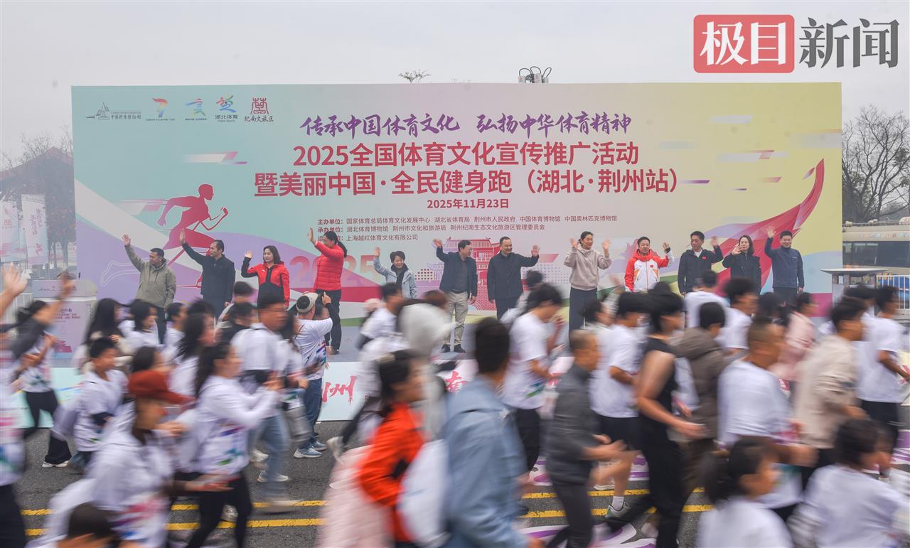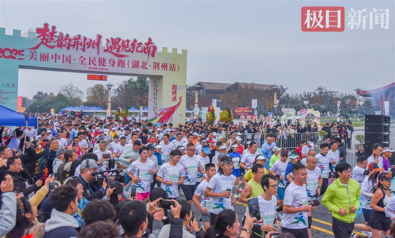 11月23日,2025全国体育文化宣传推广活动暨美丽中国·全民健身跑(湖北·荆州站)在荆州纪南文旅区启动,3000多名跑友在初冬胜景中尽情奔跑。
