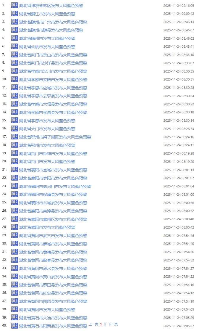 湖北省气象台2025年11月24日05时53分发布大风蓝色省级预警。