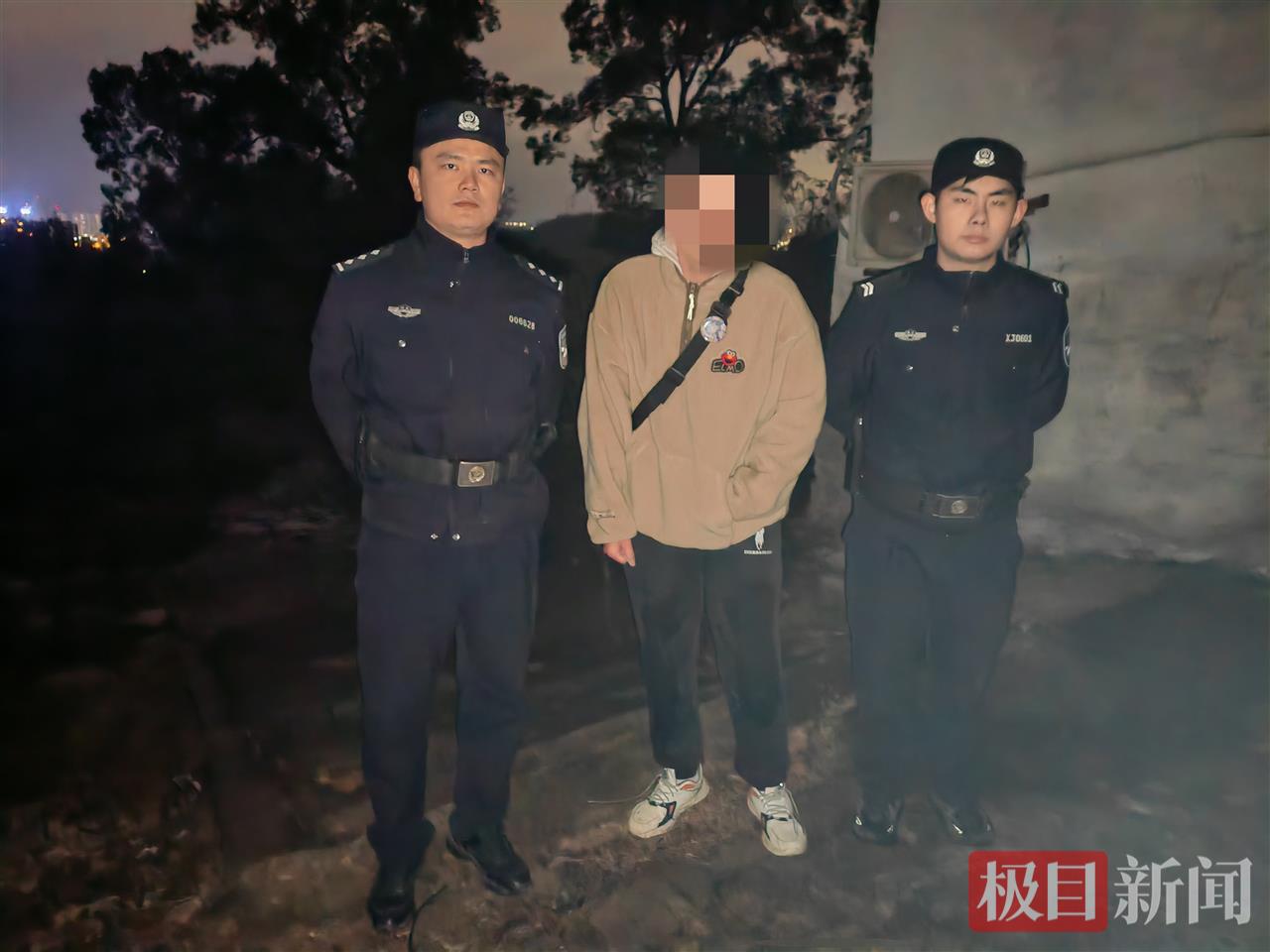 夜色已深,山中漆黑一片,山路更是崎岖难行,但民警深知多耽误一分钟,被困者就多一分危险。凭借着对地形的熟悉,民警打着强光手电筒徒步上山搜寻,并不断大声呼喊小张的名字。经过半个多小时的找寻,民警最终在该道观附近,找到了早已冻得瑟瑟发抖的小张。